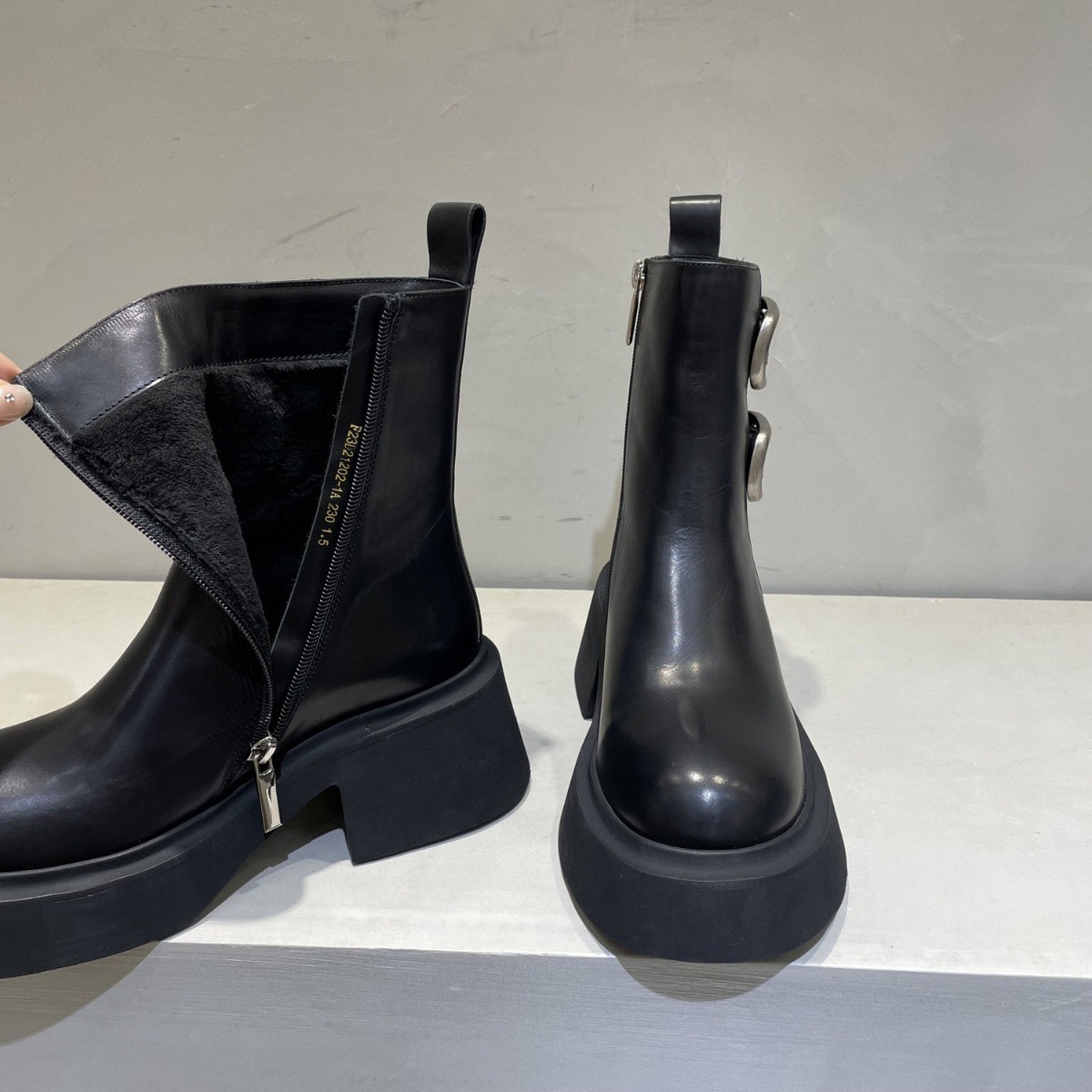 유럽 역 2024 가을과 겨울 새로운 두꺼운 밑창 기모 따뜻한 부츠 고급 느낌 벨트 버클 마틴 부츠 여성