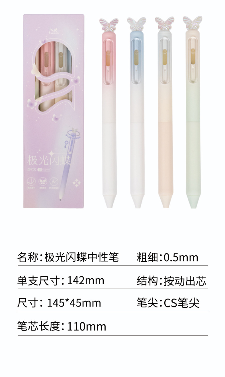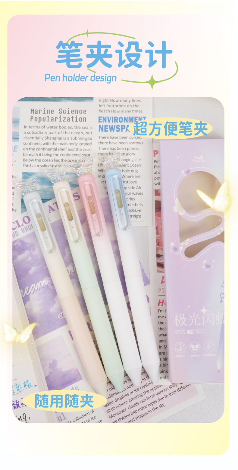 이미지 오로라 플래시 나비 젤 펜 높은 색상 값 감압 프레스 젤 펜 0.5CS 빠른 건조 학생 브러시 펜