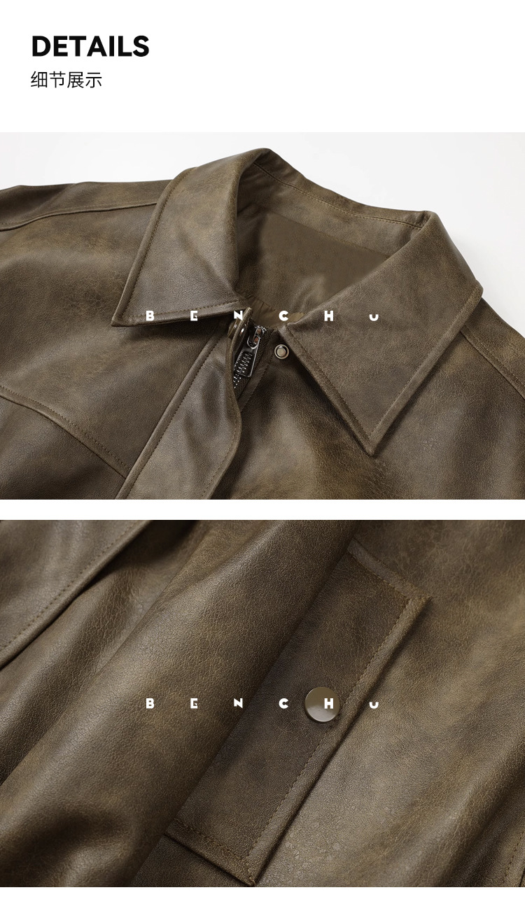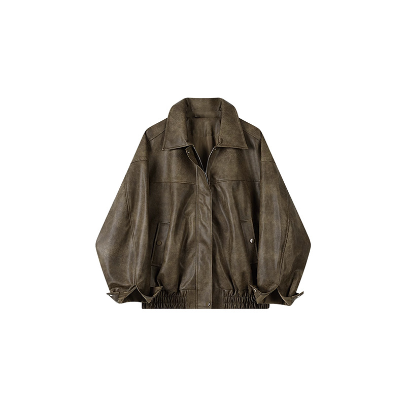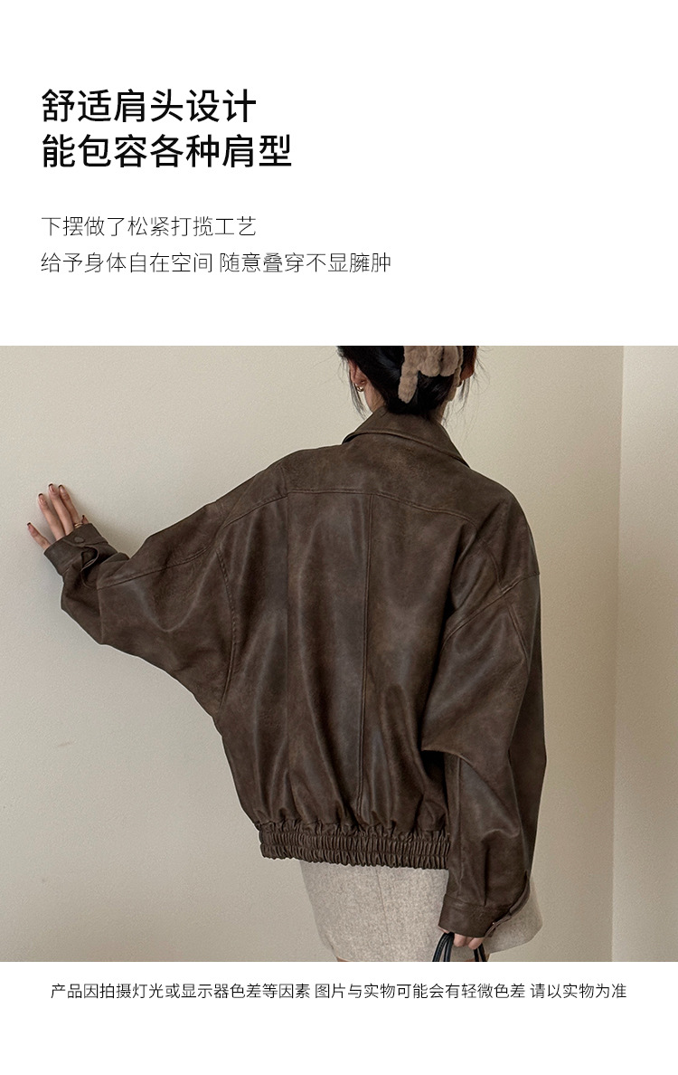 [벤 추] 2024 가을 새 미국 다크 브라운 드레스 재킷 가죽 여성 느슨한 지퍼 캐주얼 짧은 자켓