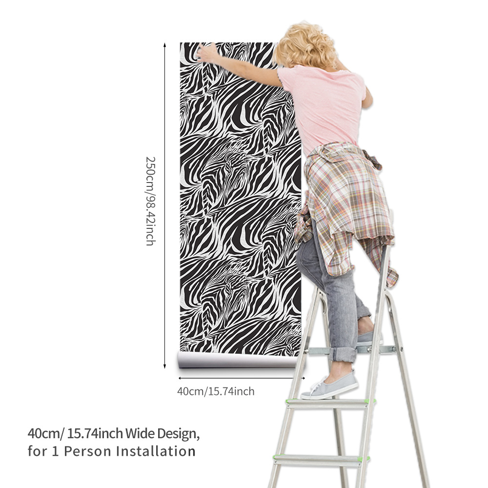 Funlife Wild Beauty 흑백 얼룩말 머리 패턴 자체 접착 벽 스티커 홈 장식 미화 벽지 SWP147스토어 가기