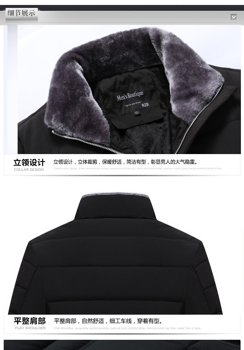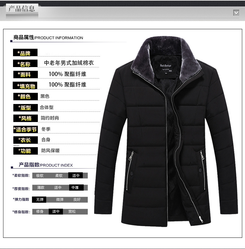 중년 및 노인 남성을위한 국경을 넘는 면화 패딩 의류 중장 남성 기모 두꺼운 남성 모피 칼라 플러스 사이즈 아버지 겨울 코트