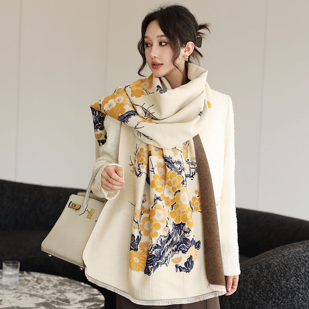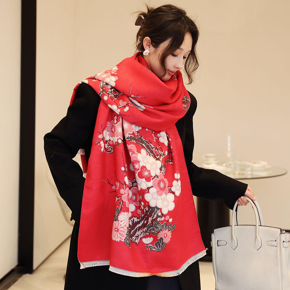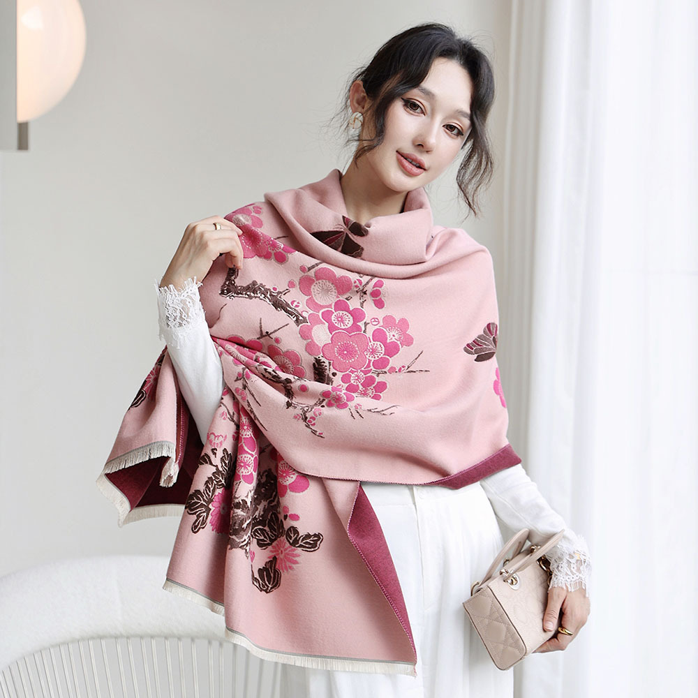 양면 스카프 여성의 가을과 겨울 긴 망토 이중 사용 중국 스타일 캐시미어 두꺼운 매화 목도리 스카프