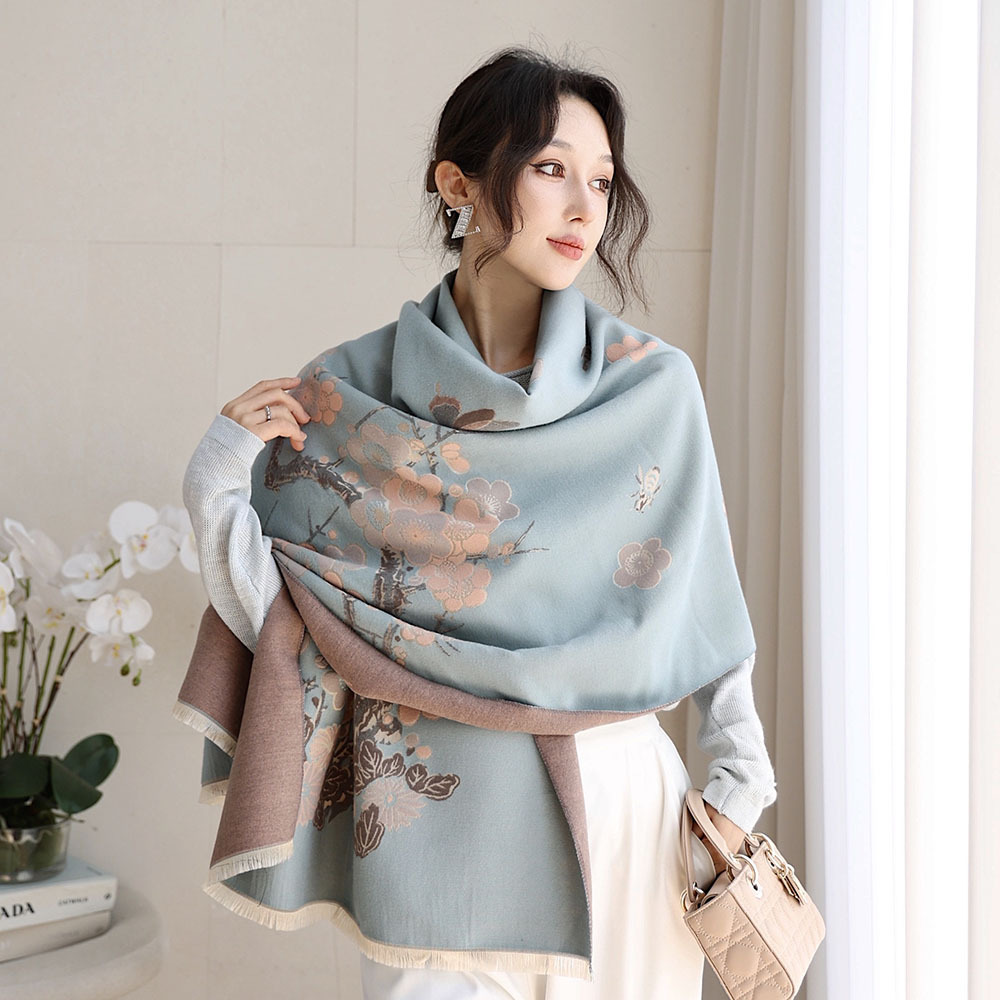 양면 스카프 여성의 가을과 겨울 긴 망토 이중 사용 중국 스타일 캐시미어 두꺼운 매화 목도리 스카프스토어 가기
