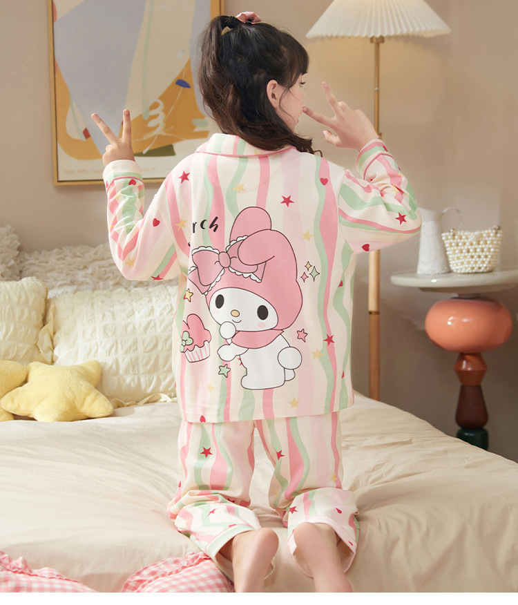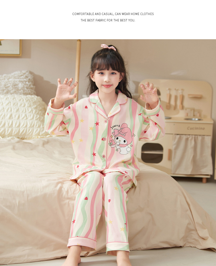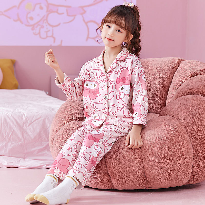 어린이 잠옷 봄과 가을 소녀의 긴팔 큰 어린이 정장 2025 새로운 가을 만화 소녀 공주 가정 옷스토어 가기