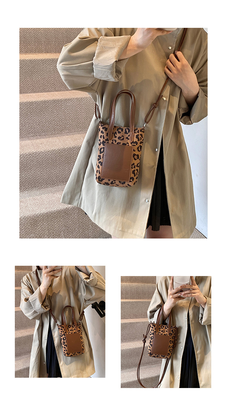 레트로 틈새 레오파드 무늬 가방 작은 사각형 가방 새로운 패션 올 매치 메신저 가방 스웨이드 휴대 전화 가방 여성 도매스토어 가기