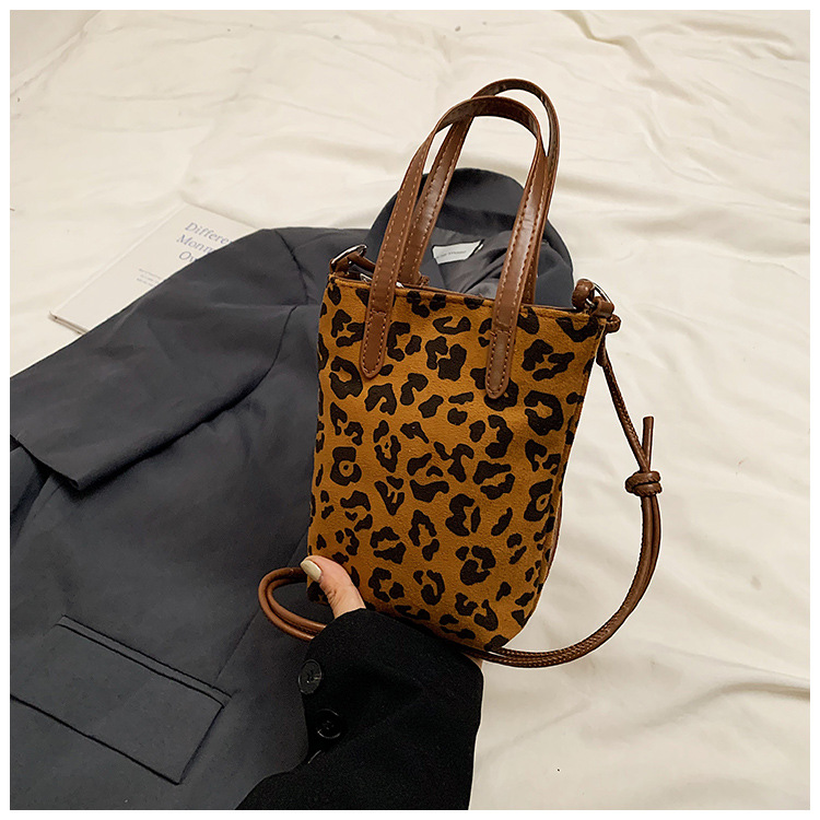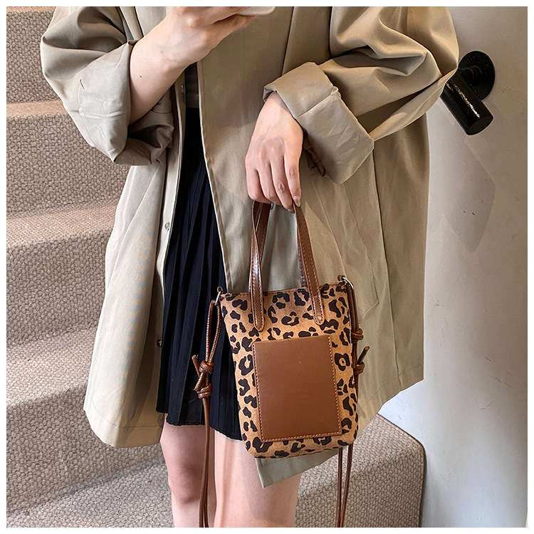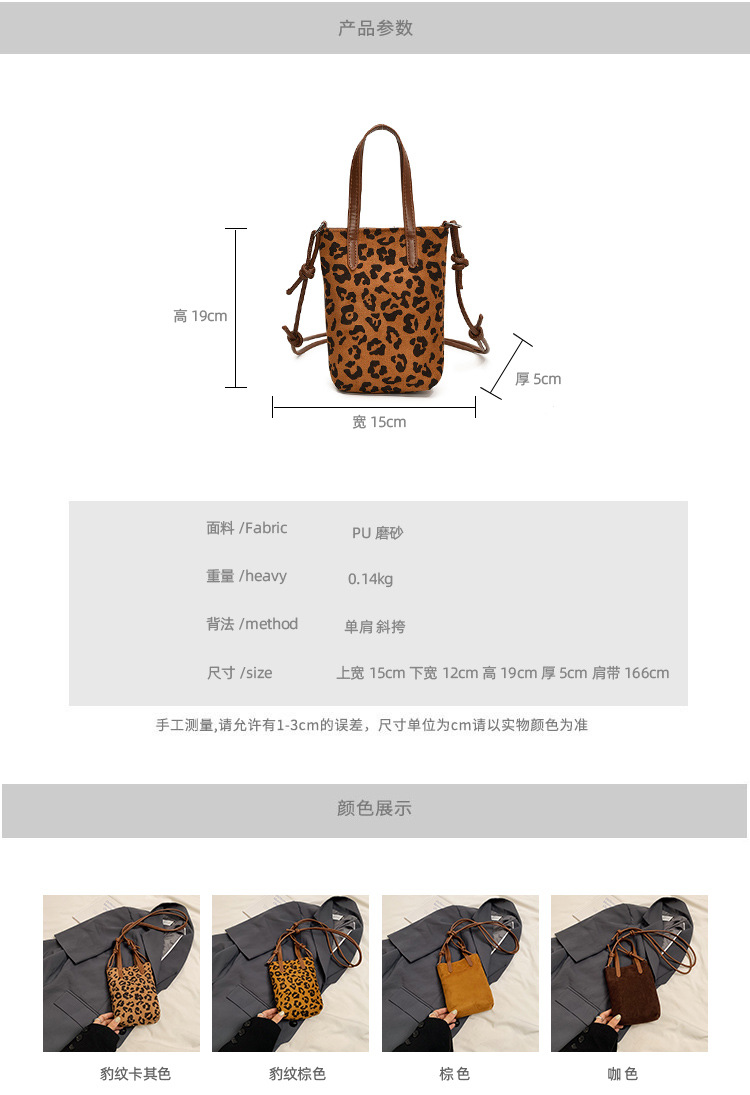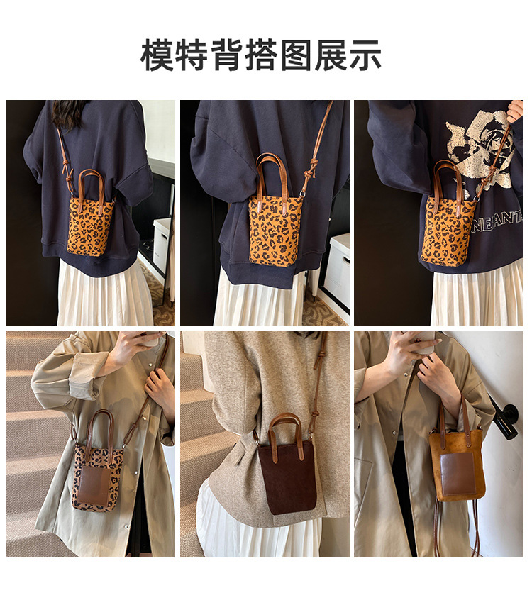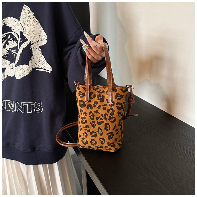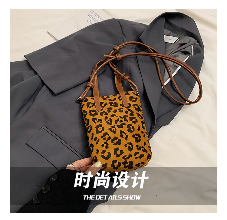 레트로 틈새 레오파드 무늬 가방 작은 사각형 가방 새로운 패션 올 매치 메신저 가방 스웨이드 휴대 전화 가방 여성 도매