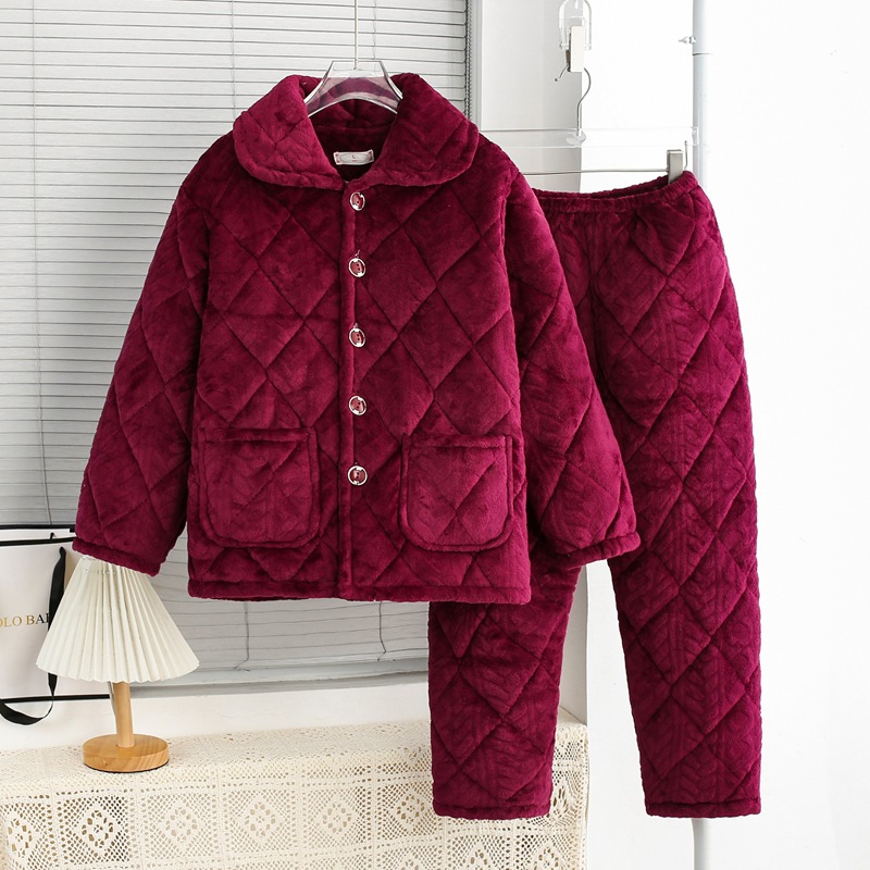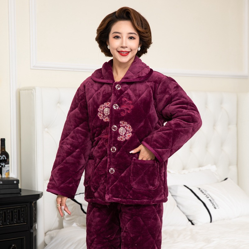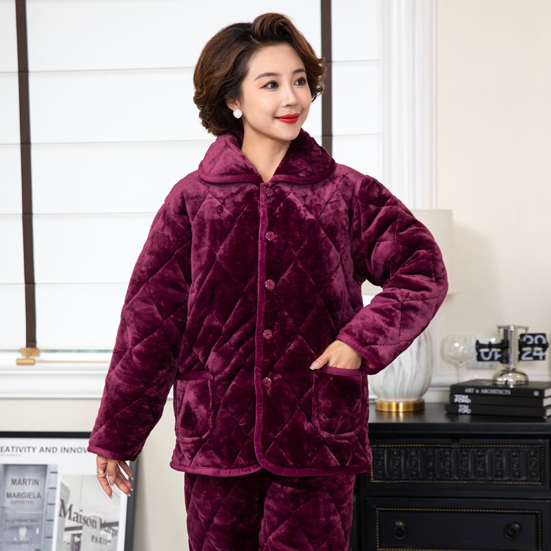 겨울 중년 및 노인 여성 플란넬 파자마 세트 패딩 패딩 따뜻한 산호 양털 홈 의류 공장 도매