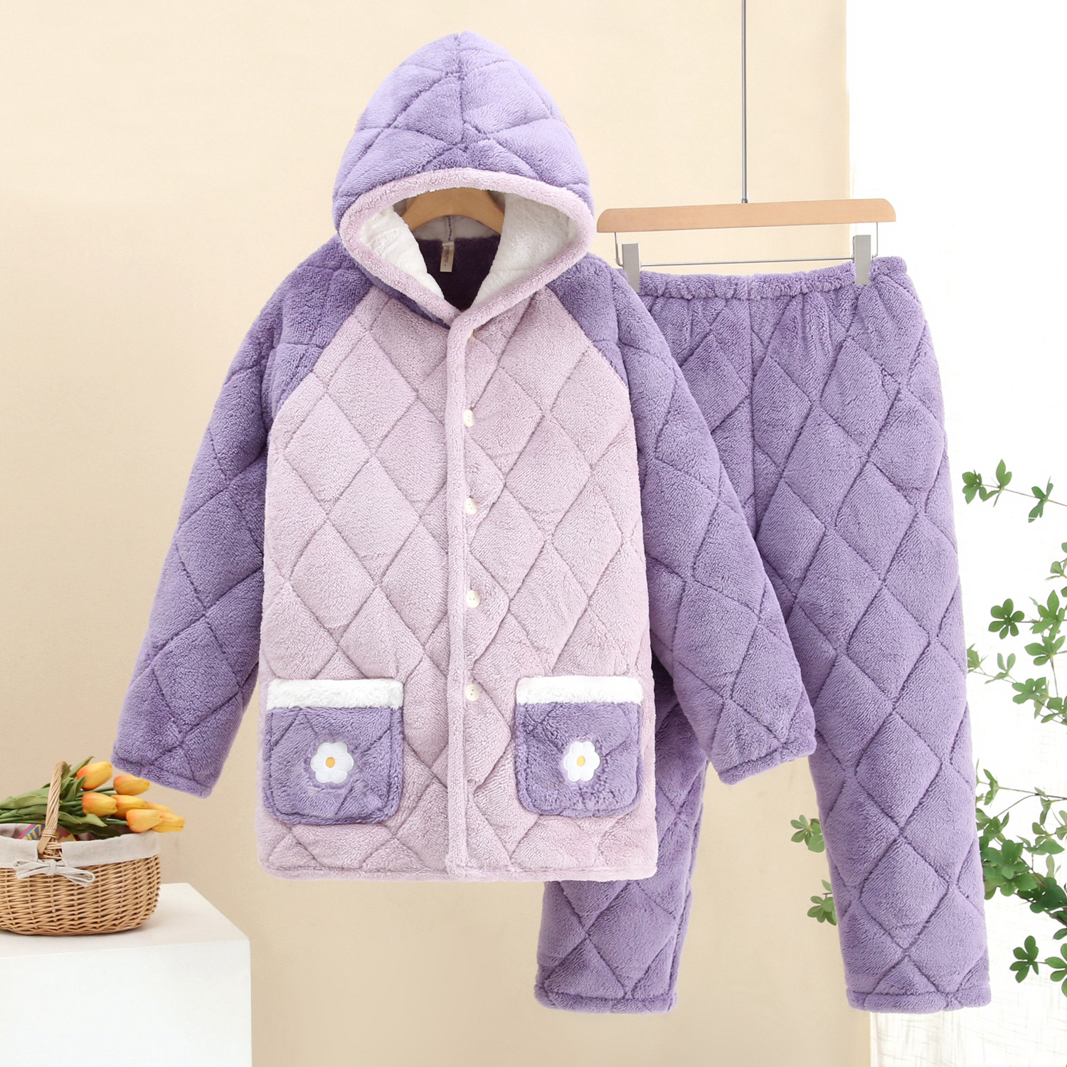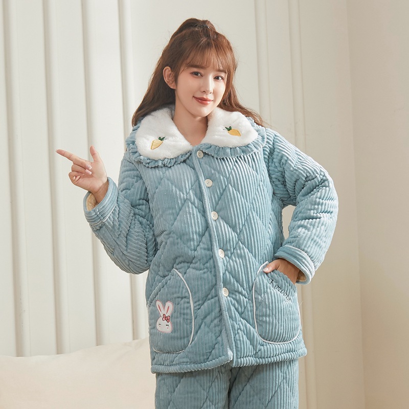 女士三层夹棉睡衣