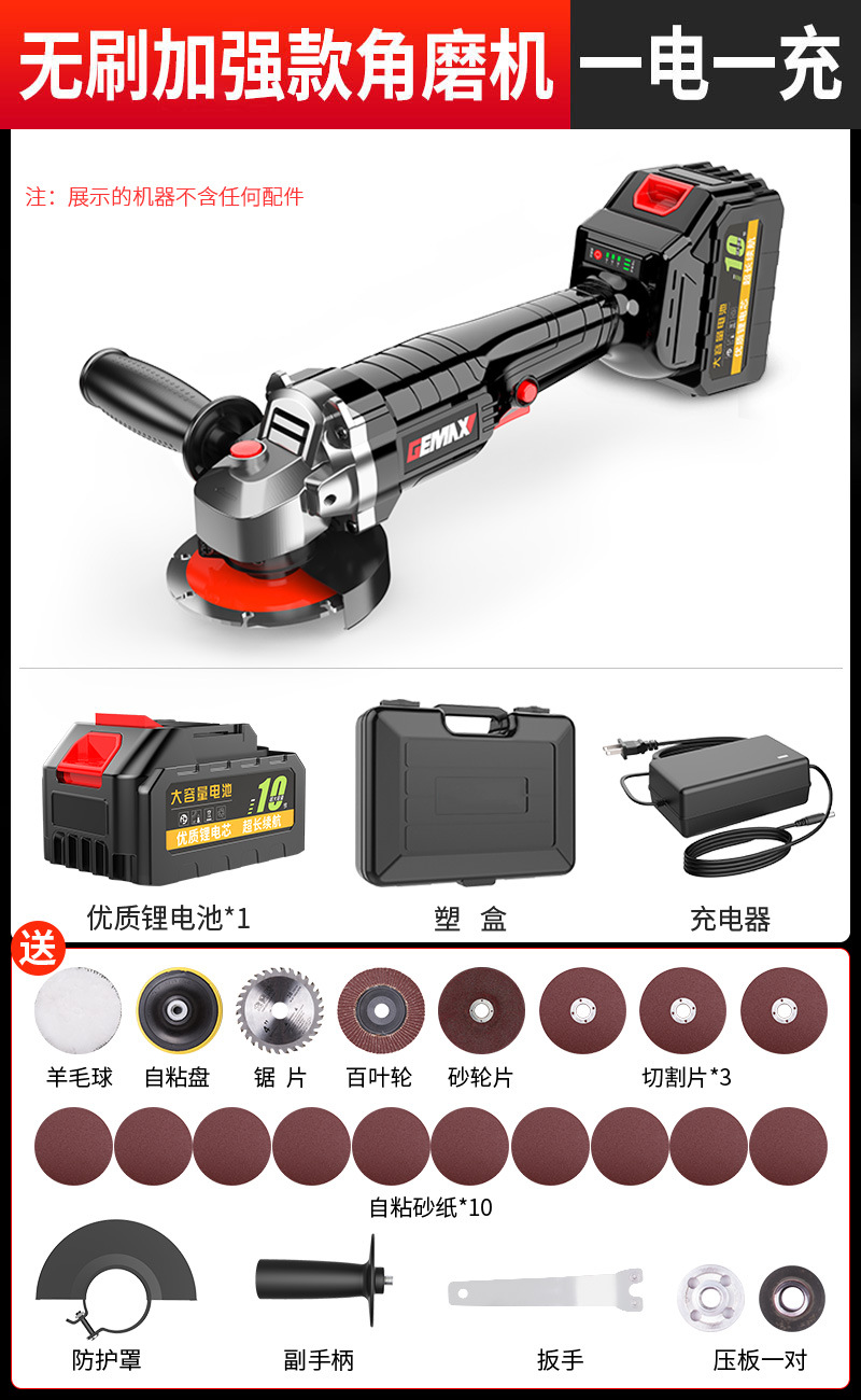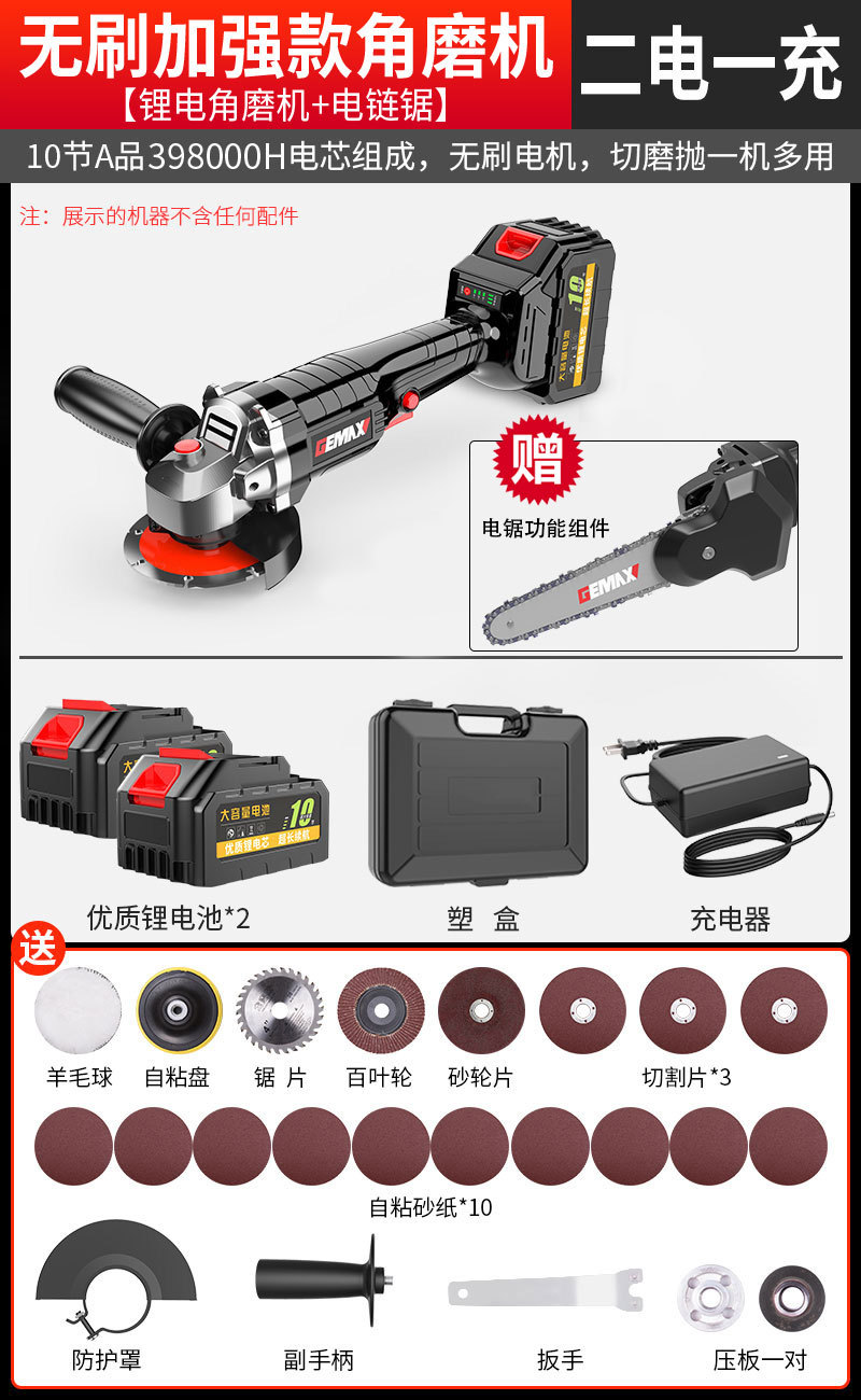 • 188VF 브러시리스 강화 모델 [배터리 10개398000H|보조 배터리] + 전원 공급 체인 톱 + 절단 및 연삭 세트