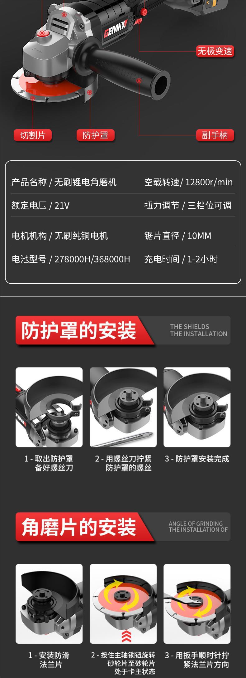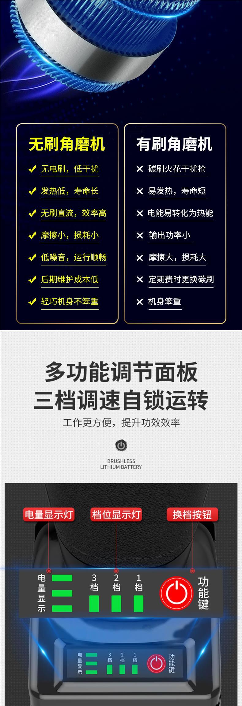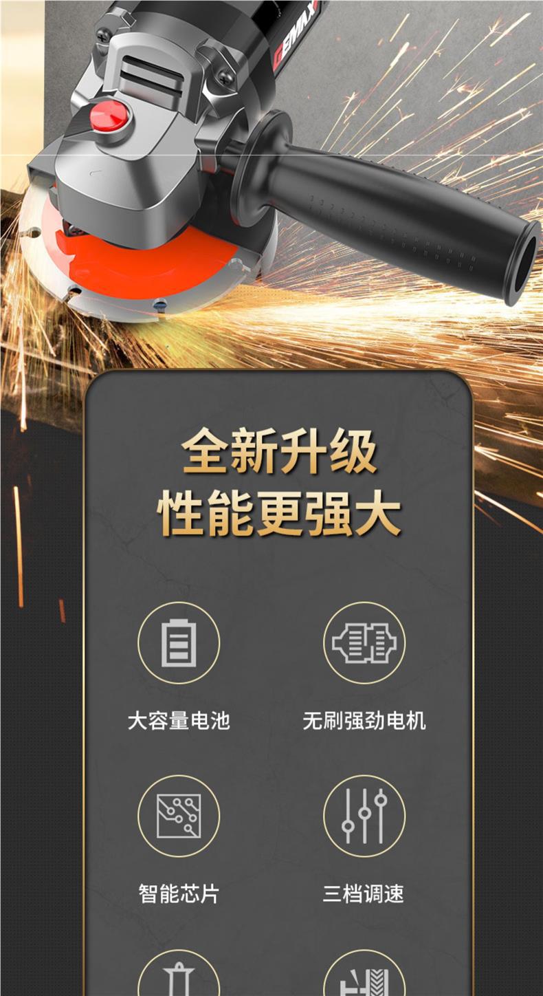 브러시리스 충전식 앵글 그라인더 리튬 배터리 고성능 전기 연삭 기계 절단 기계 손 연삭 휠 연삭 기계 기타스토어 가기