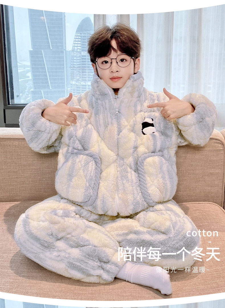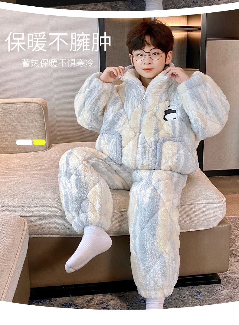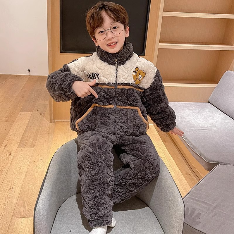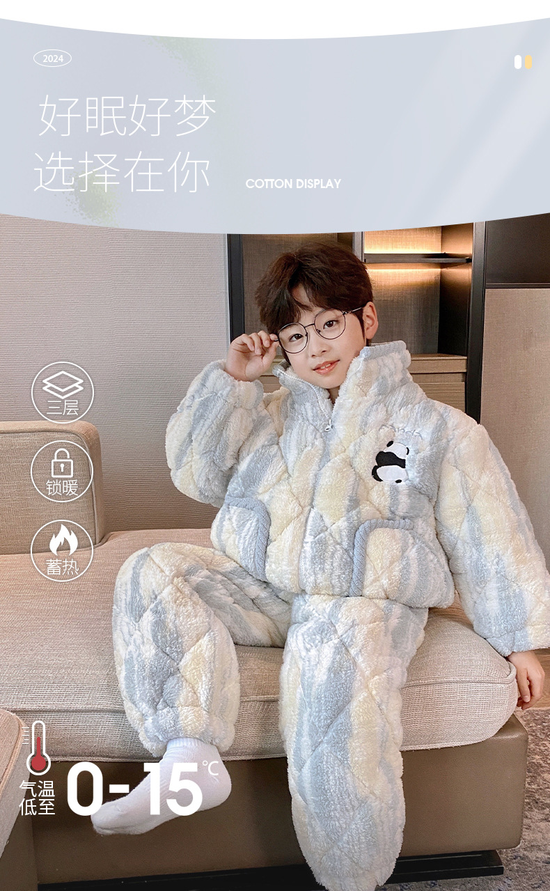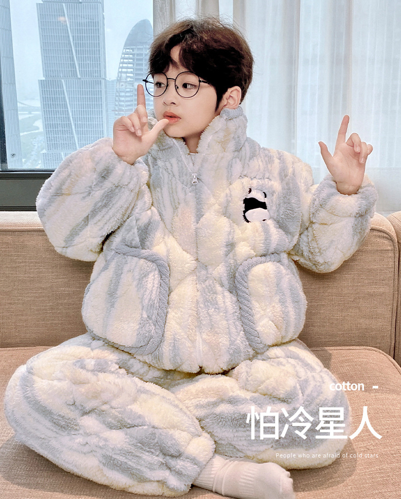 남아용 겨울 잠옷, 3중 누빔, 두꺼운 어린이용 산호 벨벳, 청소년 및 중년 아동용 홈웨어, 2025년 신상품스토어 가기