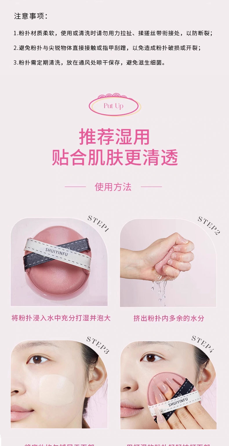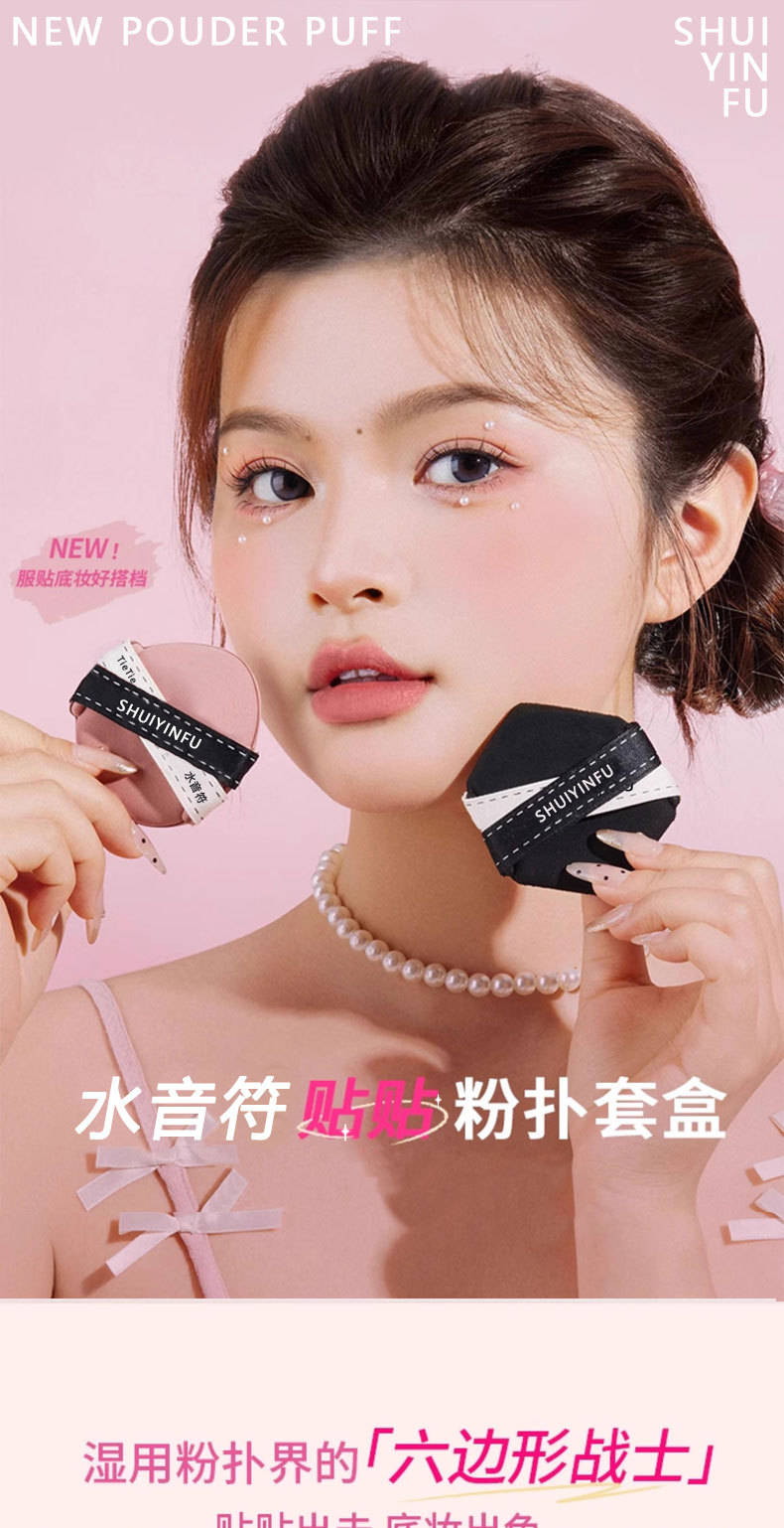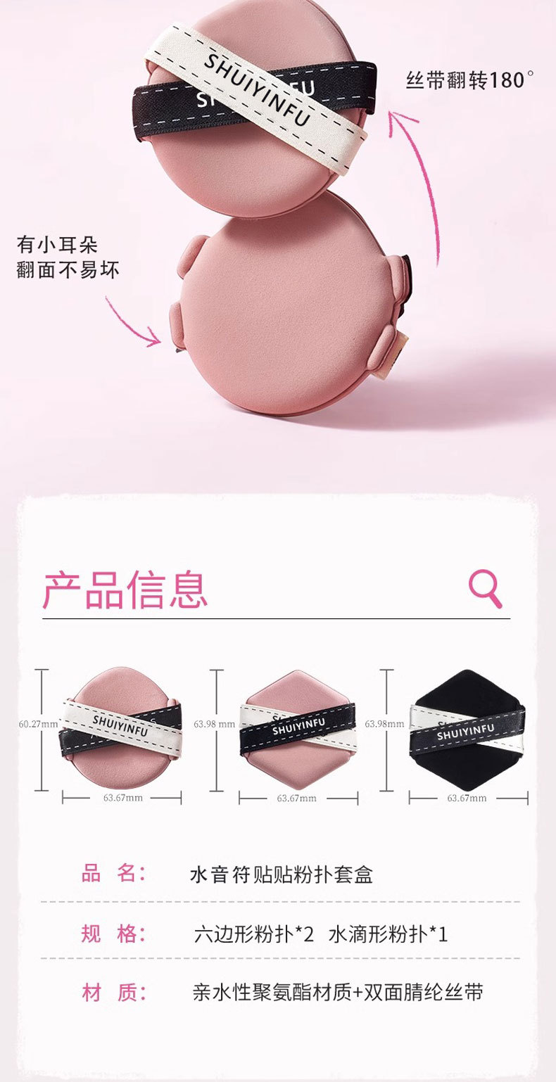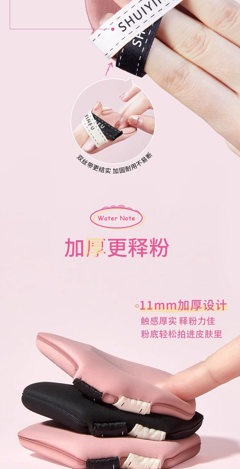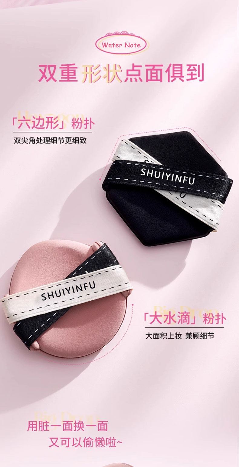 워터 노트 페이스트 파우더 퍼프 워터 드롭 더블 스트랩 솜사탕 에어 쿠션 파우더 퍼프 카메라 스토리지 박스 로고 재고스토어 가기