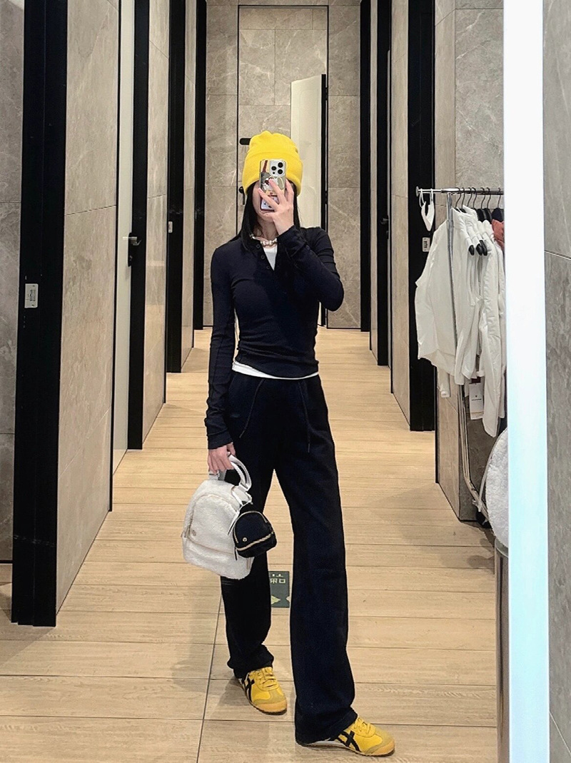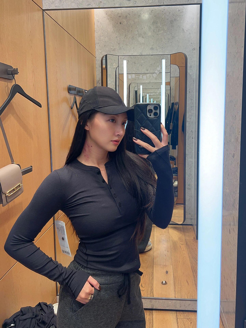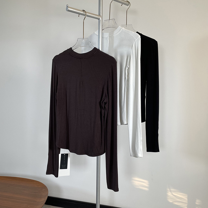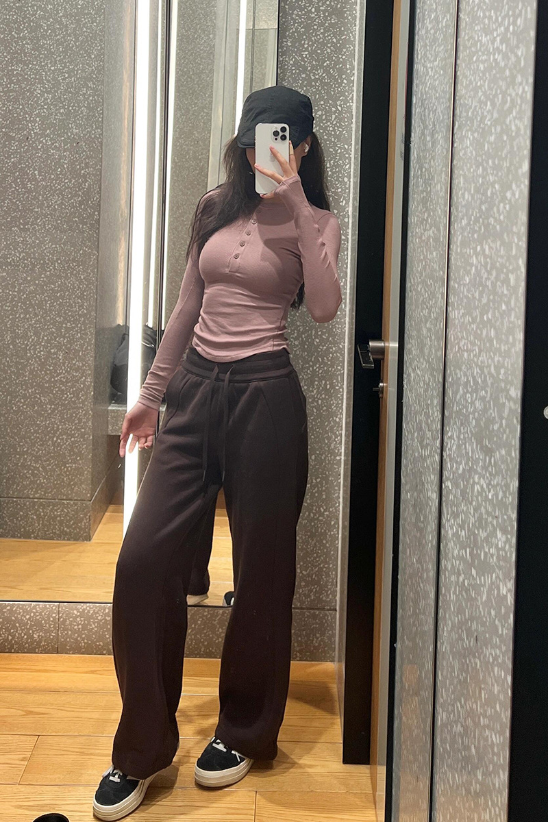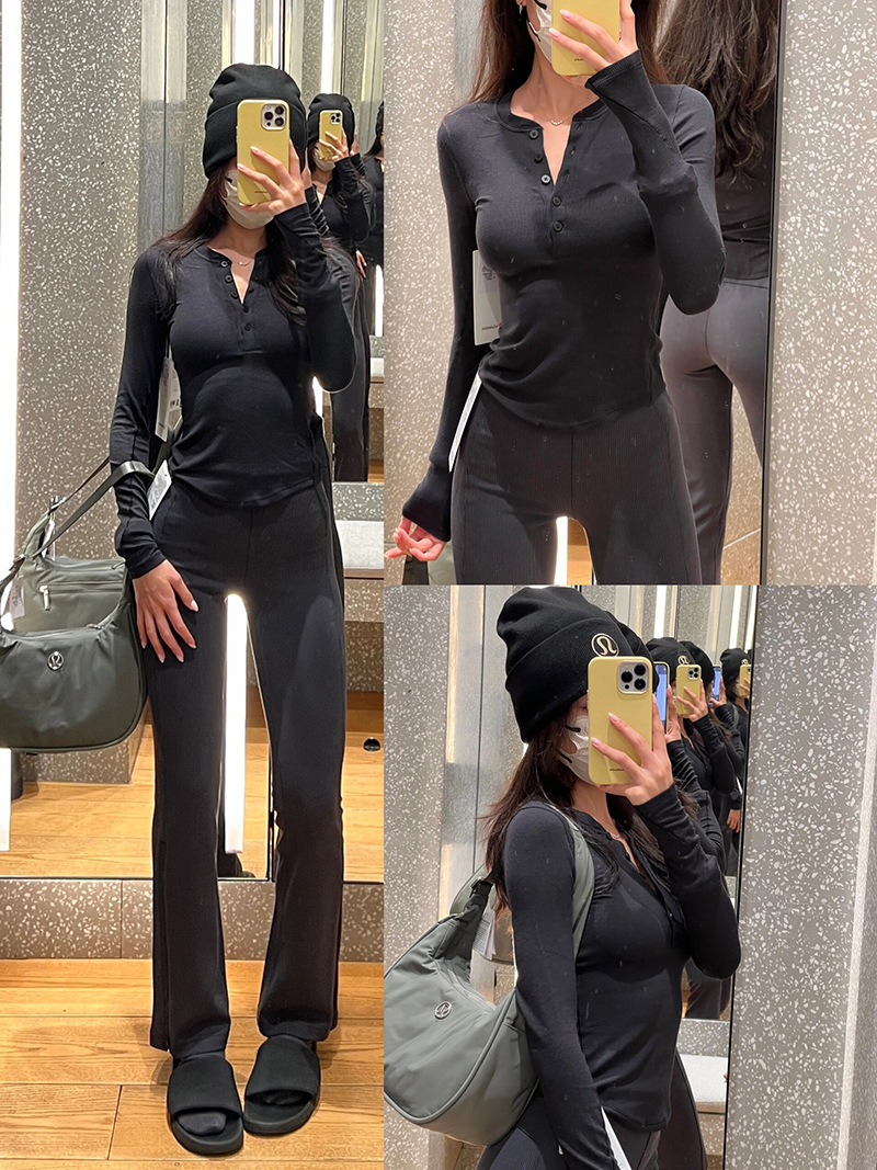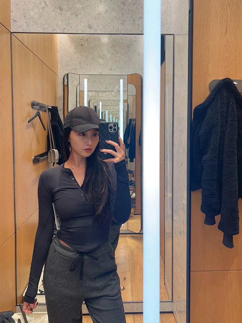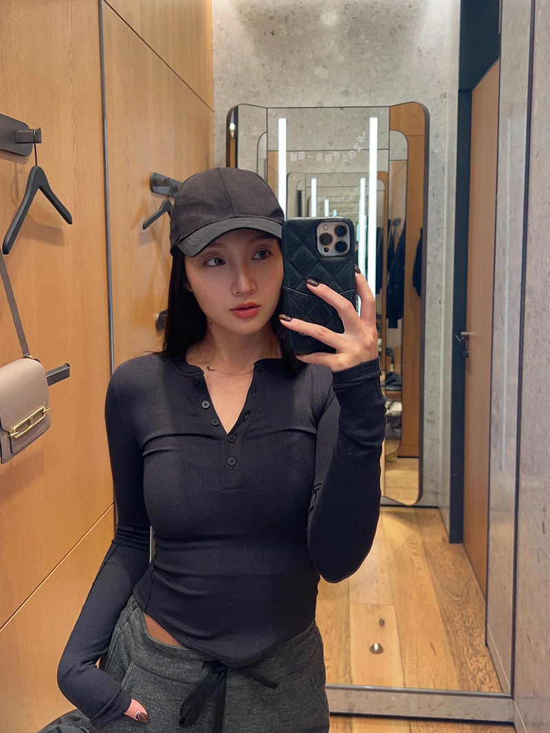 재고 있음! 홀드 타이트 동일 스타일 여성용 타이트 핏 긴팔 헨리넥 버튼 티셔츠 이너웨어 상의스토어 가기