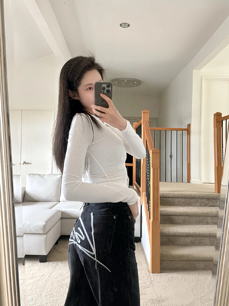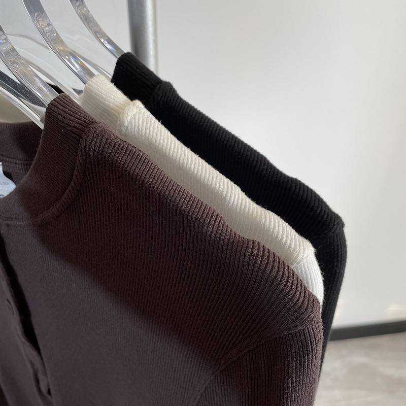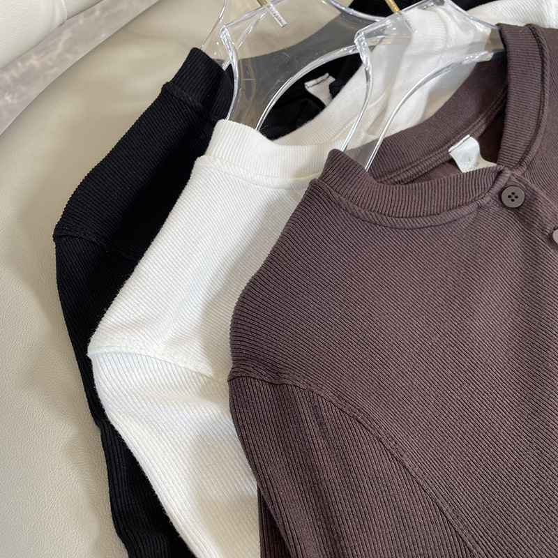 재고 있음! 홀드 타이트 동일 스타일 여성용 타이트 핏 긴팔 헨리넥 버튼 티셔츠 이너웨어 상의