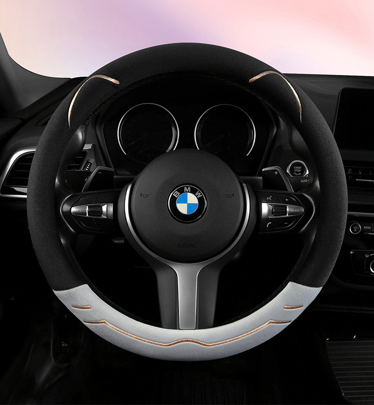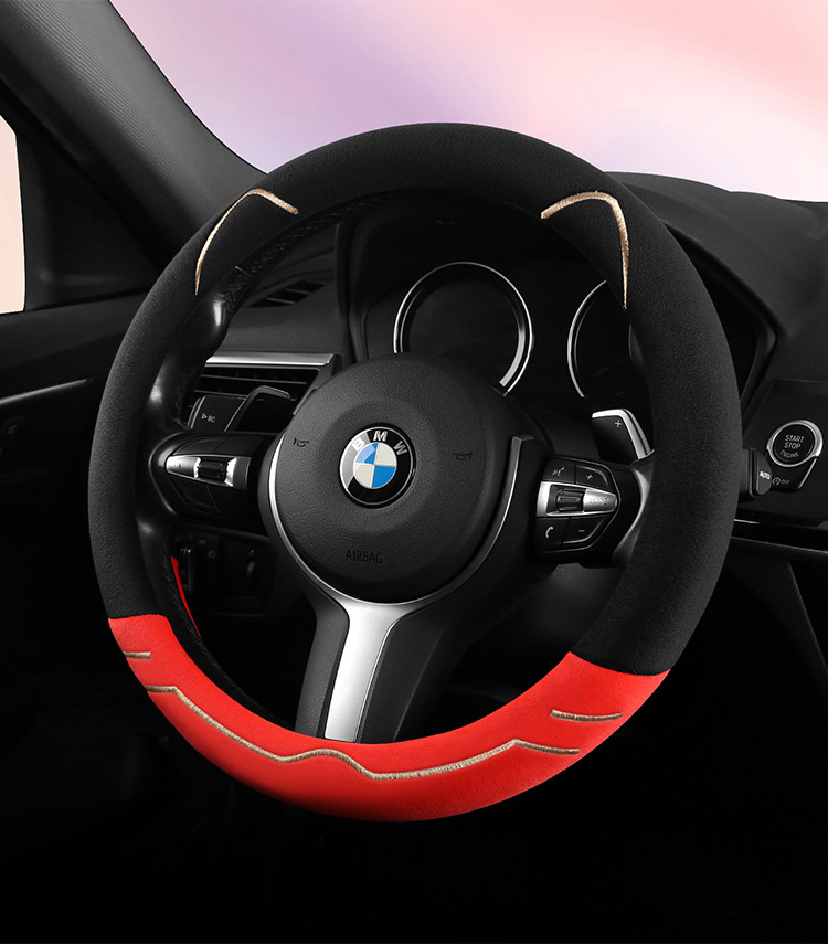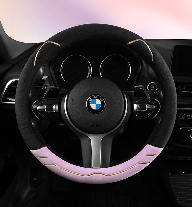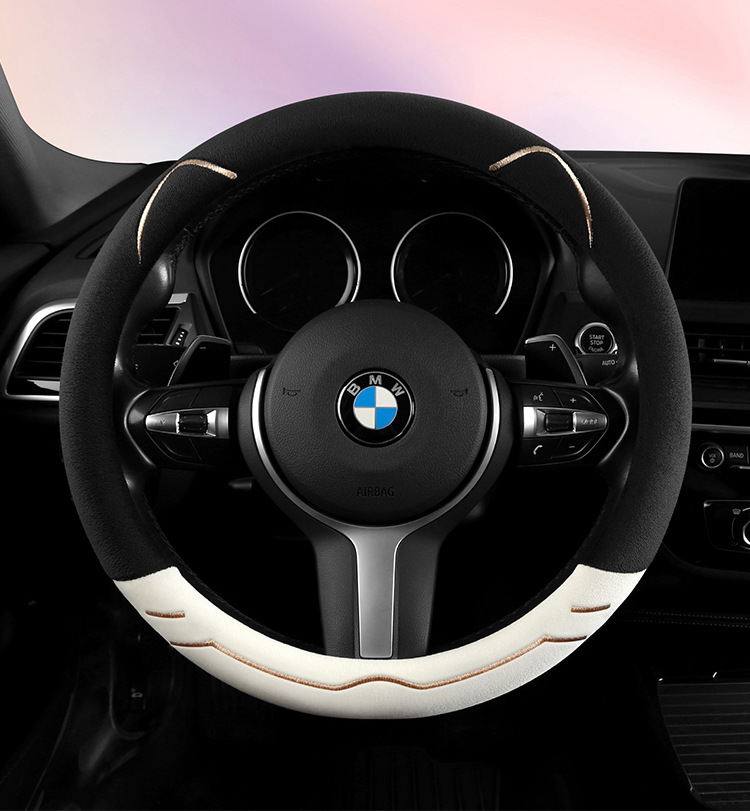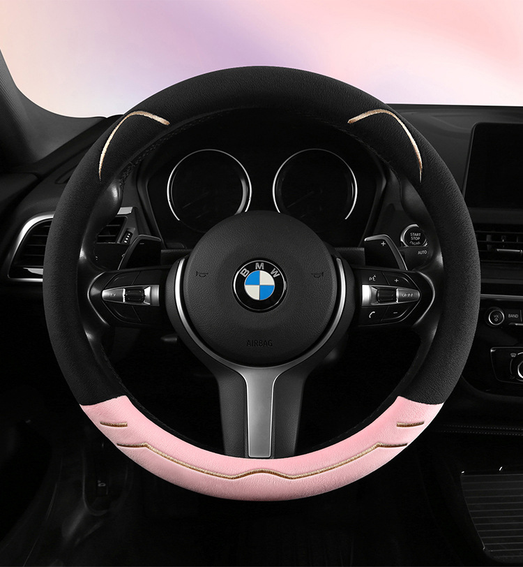 사계절 유니버설 스티어링 휠 커버 여성 고양이 귀 스웨이드 2024 새로운 인터넷 Celebrous Non-Slip 하이 레벨 자동차 핸들 커버