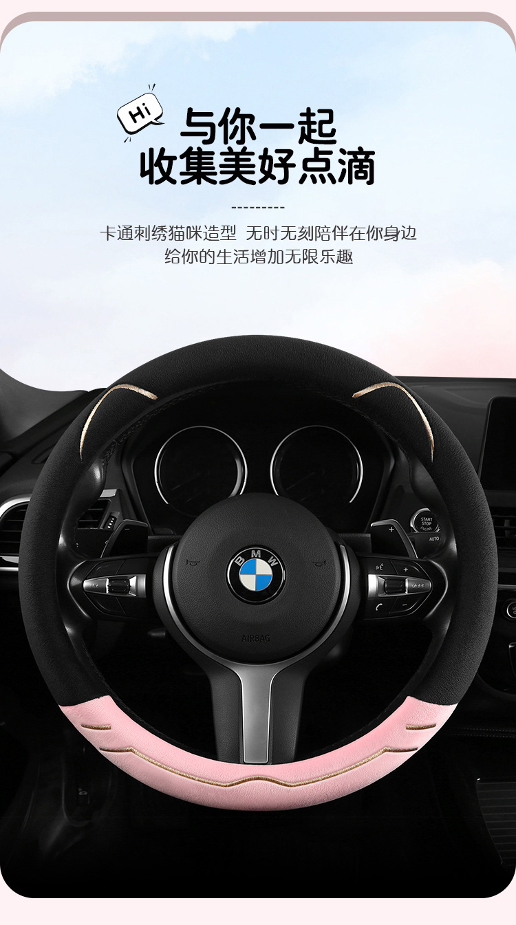 사계절 유니버설 스티어링 휠 커버 여성 고양이 귀 스웨이드 2024 새로운 인터넷 Celebrous Non-Slip 하이 레벨 자동차 핸들 커버스토어 가기