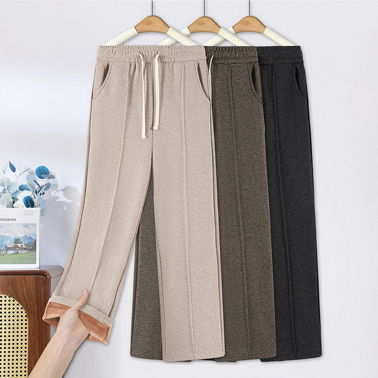 중년 및 노인 여성 바지 어머니의 바지 가을 및 겨울 캐주얼 바지 스트레이트 다리 바지 할머니 바지 기모 두꺼운 아내 바지