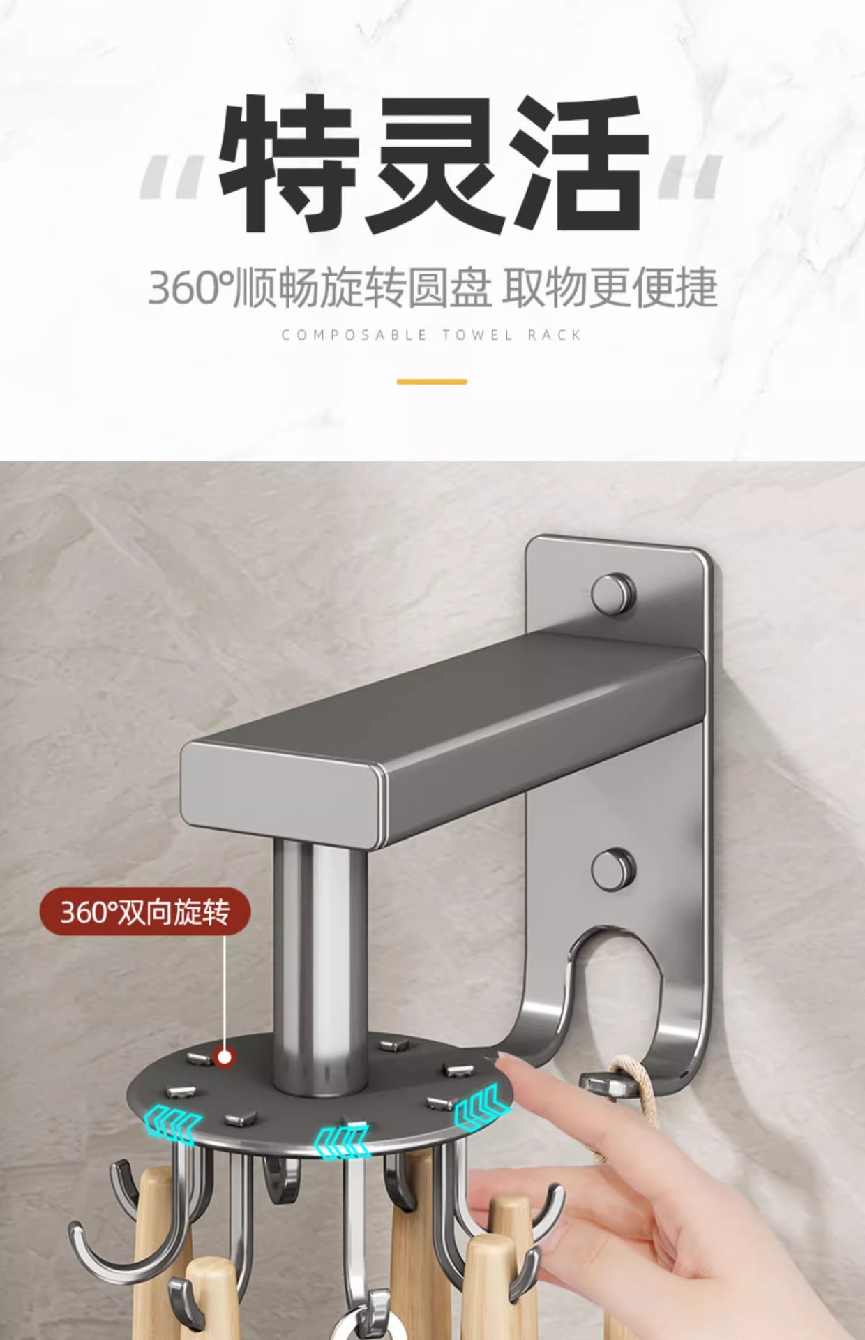 • 블랙-360°회전 후크-8 후크 [후크 포함]
