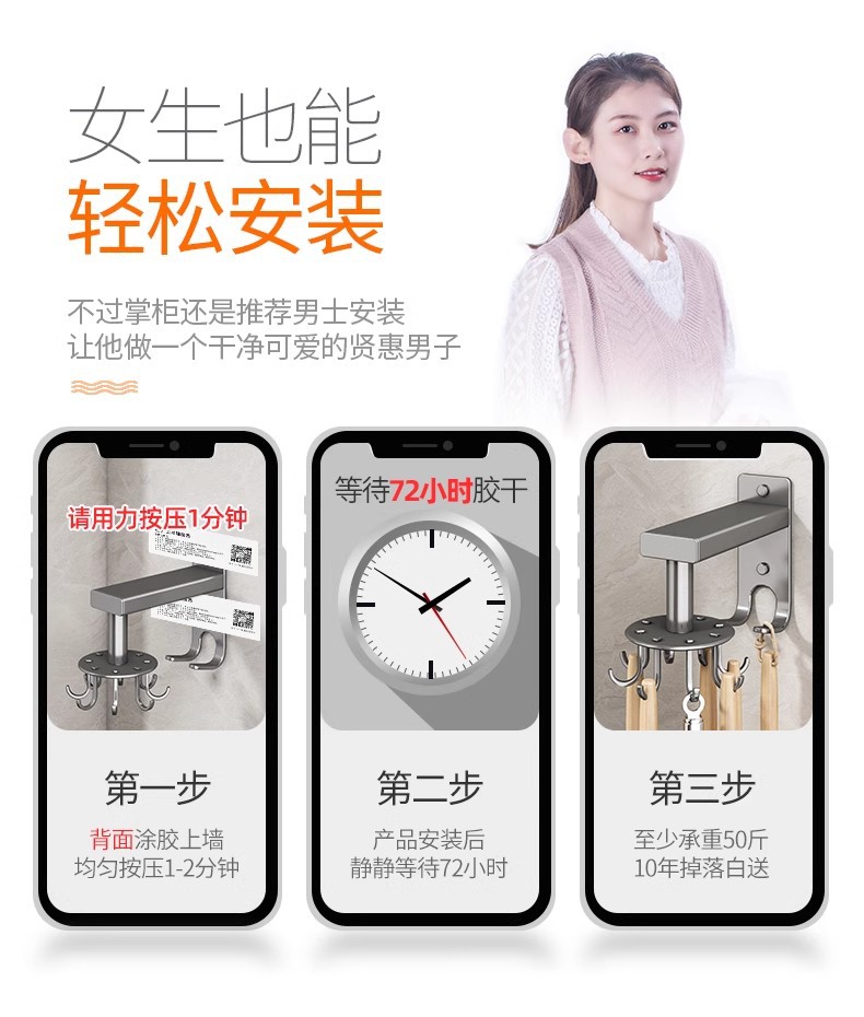 총 애쉬 주방 로타리 후크 비 펀치 벽 교수형 랙 강한 접착 벽 못없는 냄비 삽 도마 랙