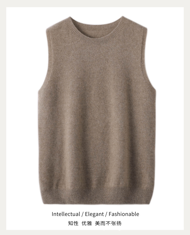 한 줄 민소매 풀오버 조끼 여성의 봄과 가을 새로운 라운드 넥 울 원활한 니트 셔츠