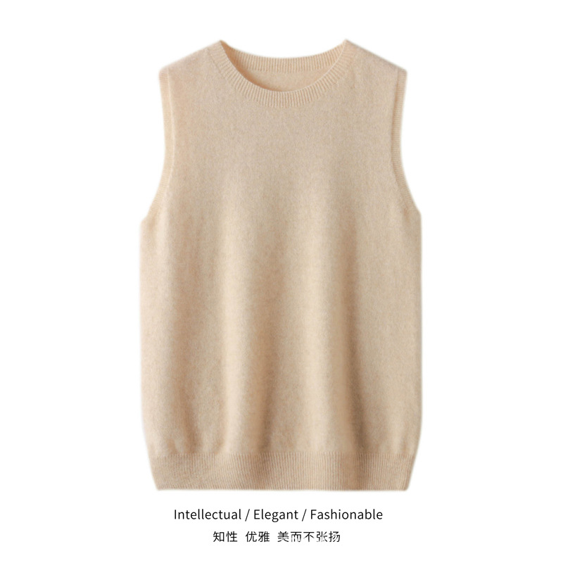 한 줄 민소매 풀오버 조끼 여성의 봄과 가을 새로운 라운드 넥 울 원활한 니트 셔츠스토어 가기