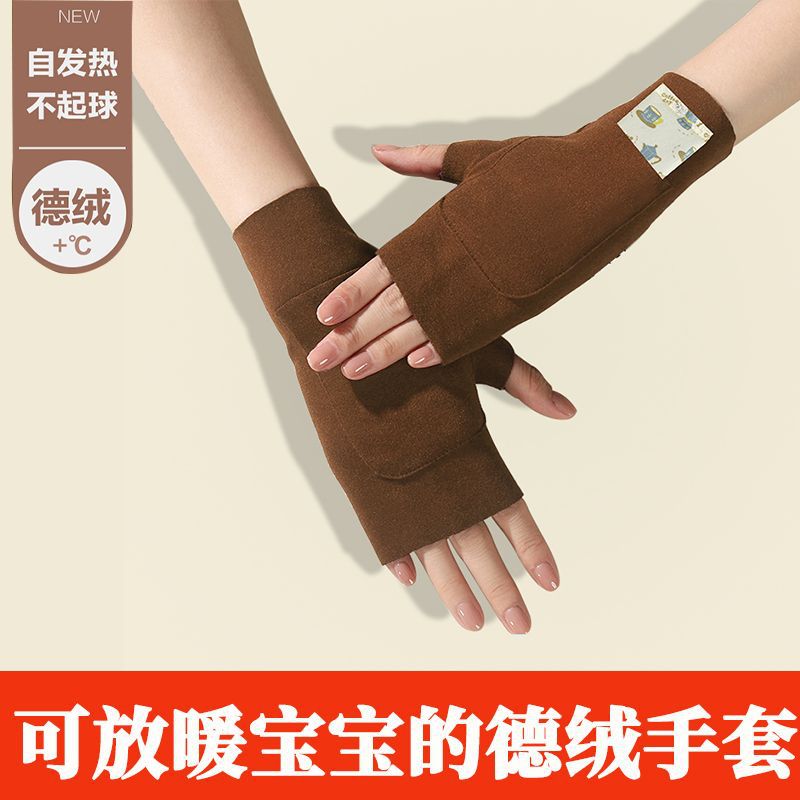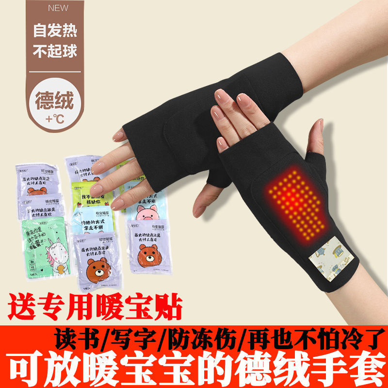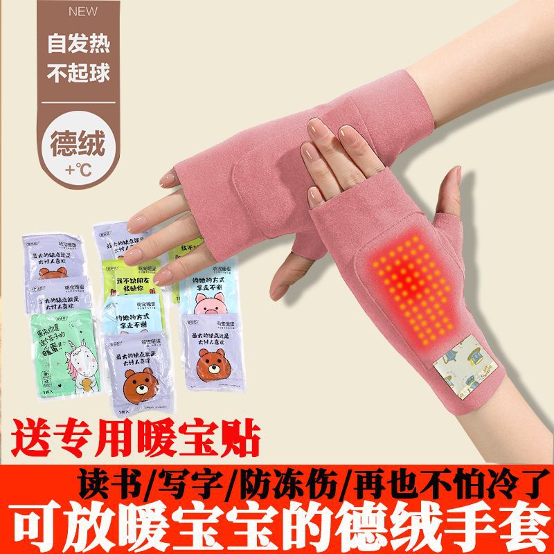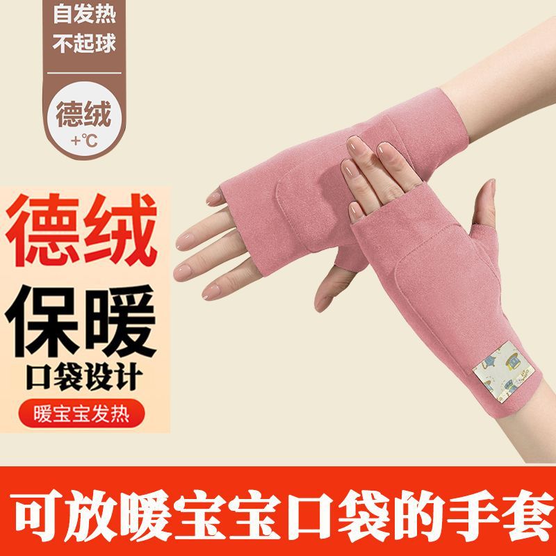 따뜻한 기모 넣을 수있는 새로운 더블 포켓 장갑 벨벳 반 손가락 주머니 디자인 따뜻한 붙여 넣기 학생들은 동상 방지 손을 씁니다.
