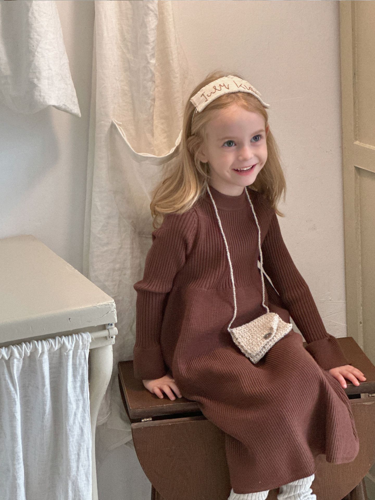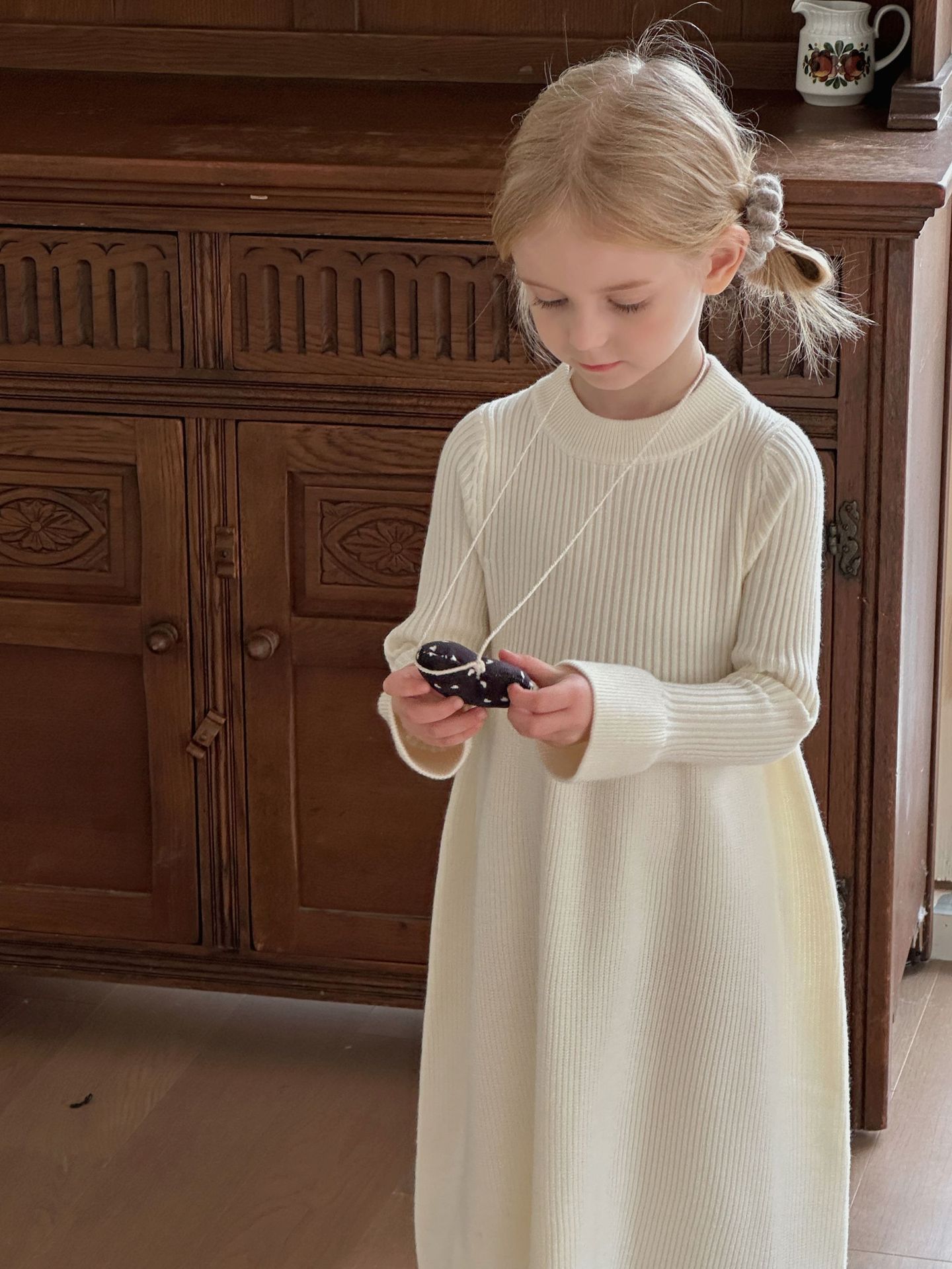 면 멀티 미터 소녀 니트 원피스 2024 가을 겨울 한국 어린이 울 원피스 어린이 올 매치 프린세스 베이스 스커트스토어 가기