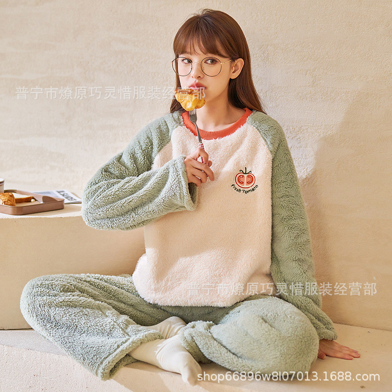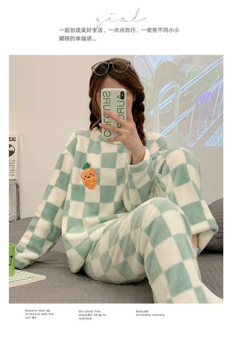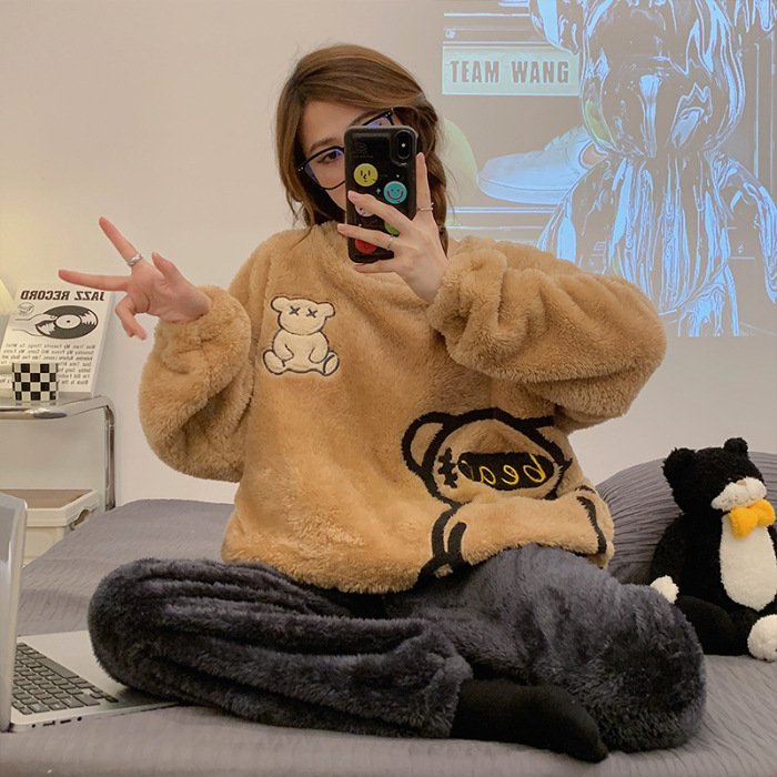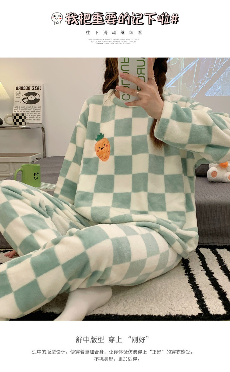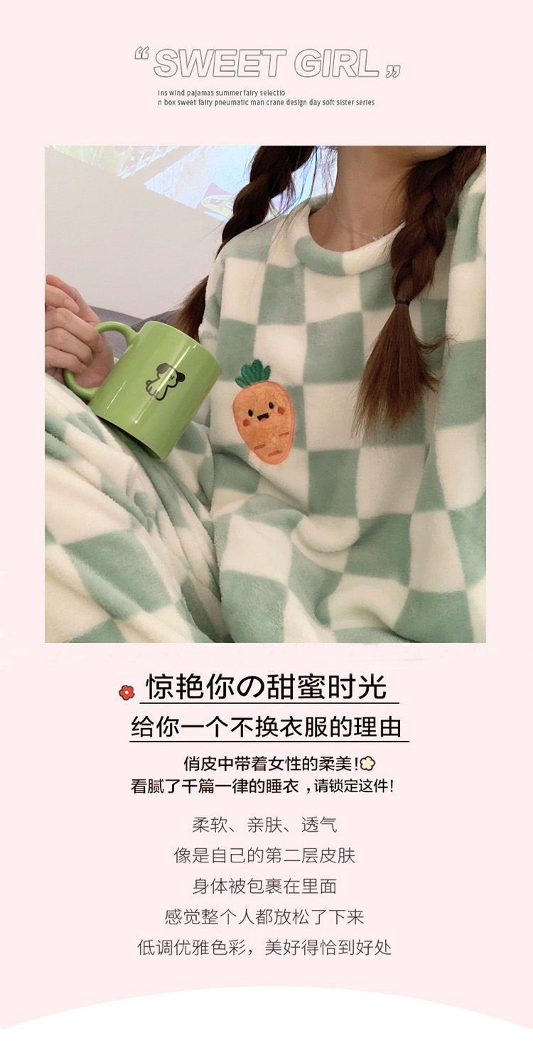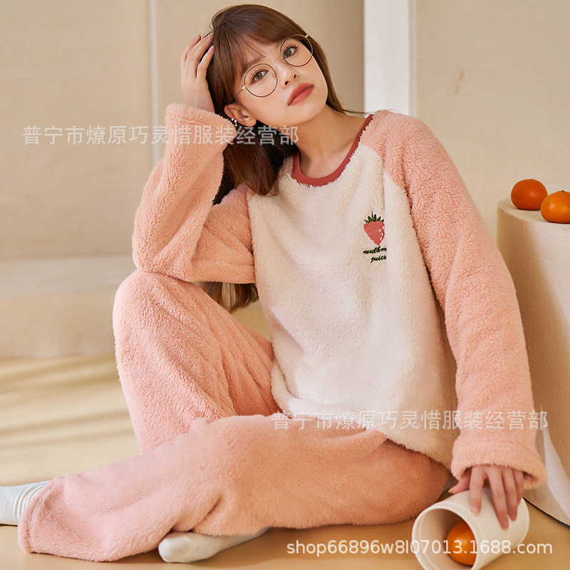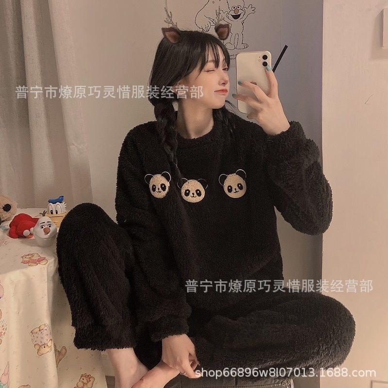산호 벨벳 파자마 여성의 겨울 기모 두꺼운 따뜻한 플란넬 사이버 연예인 Ins 스타일 2024 새 홈 의류스토어 가기