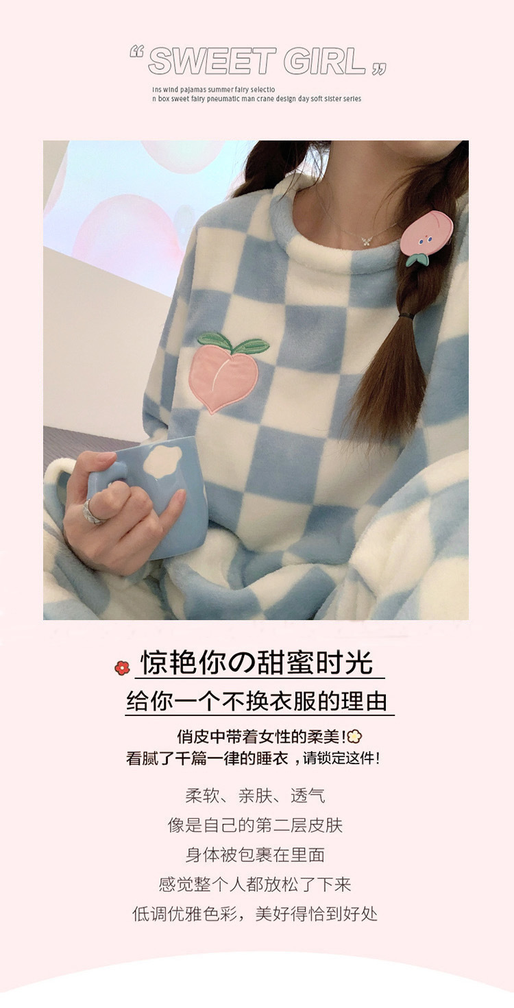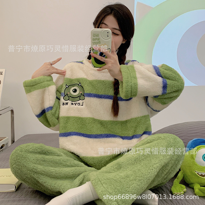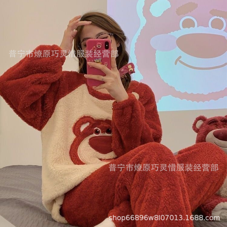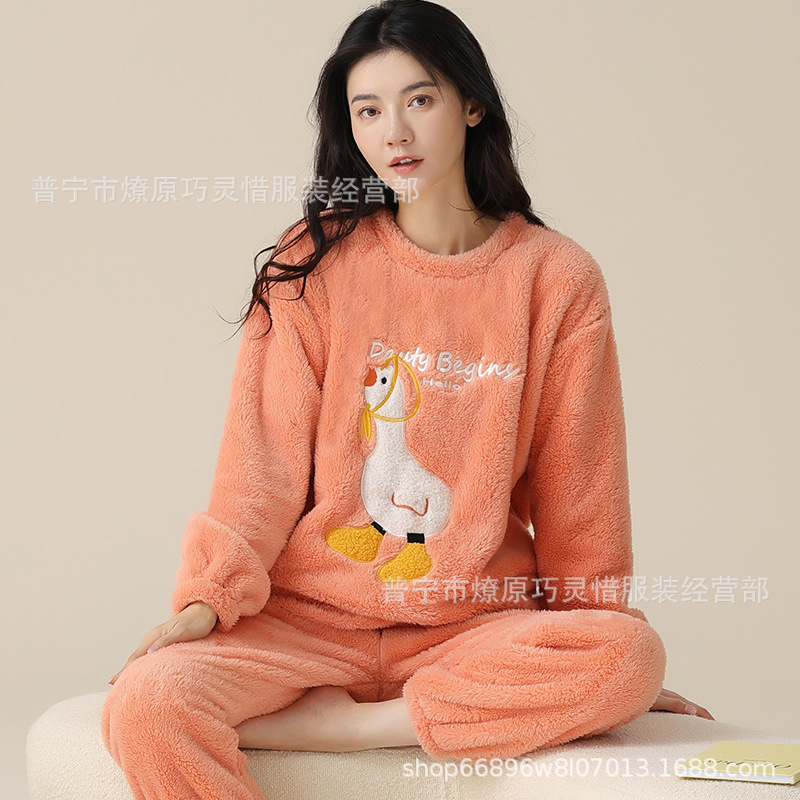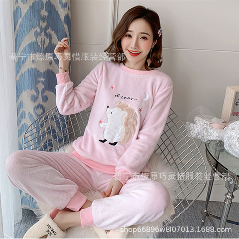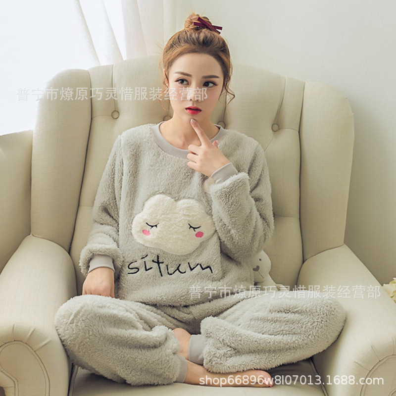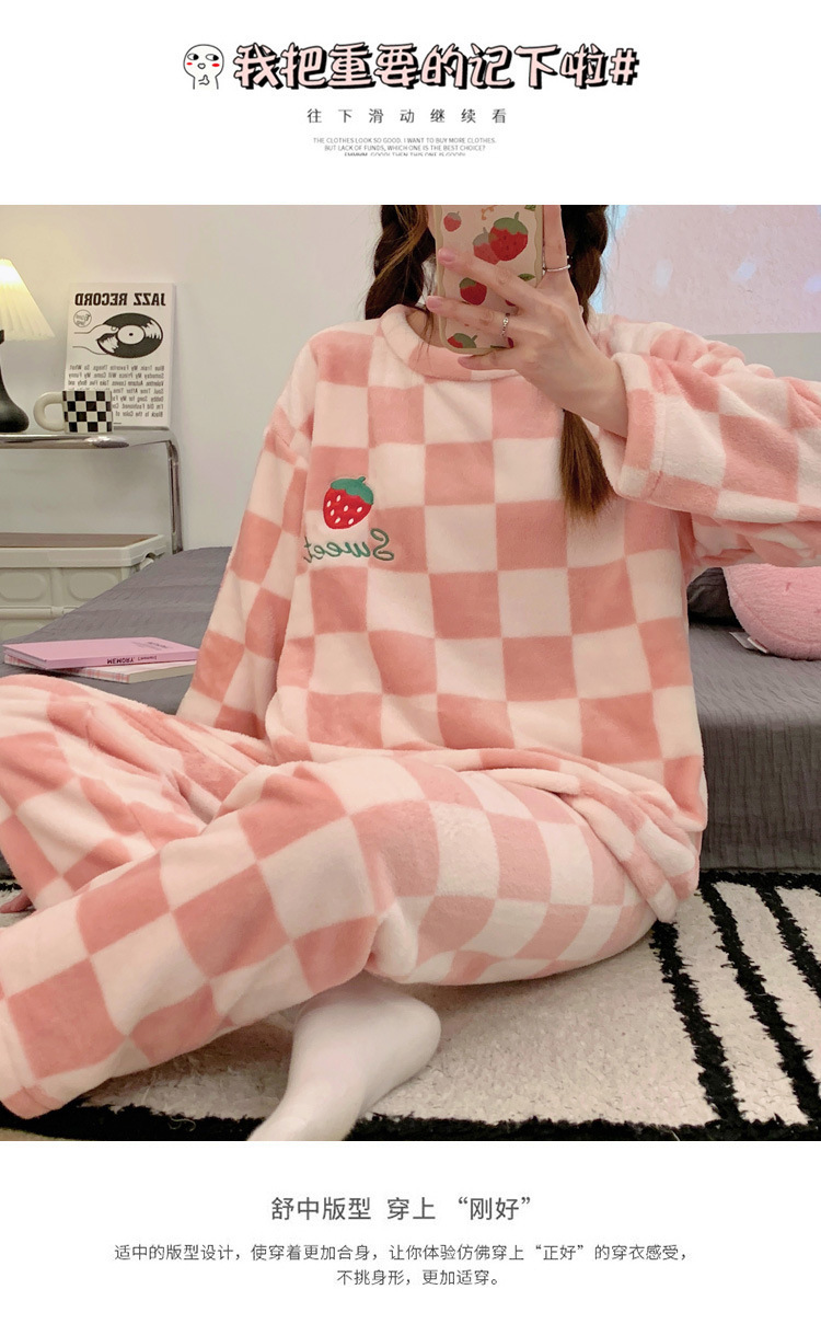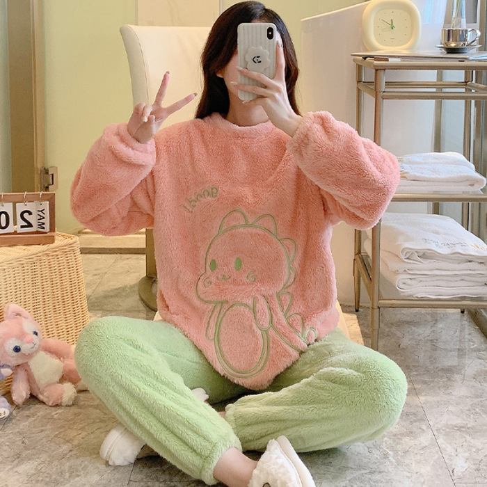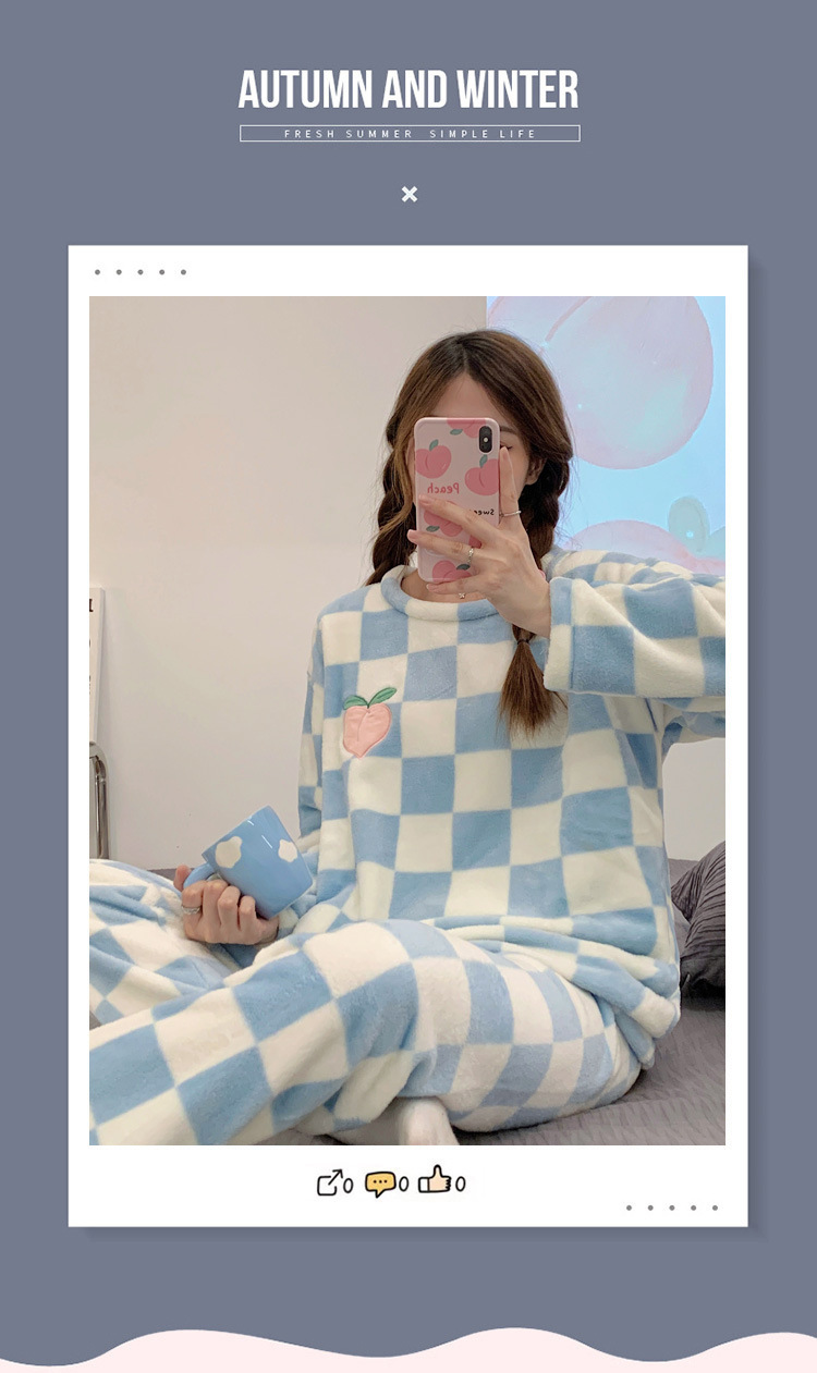 산호 벨벳 파자마 여성의 겨울 기모 두꺼운 따뜻한 플란넬 사이버 연예인 Ins 스타일 2024 새 홈 의류스토어 가기