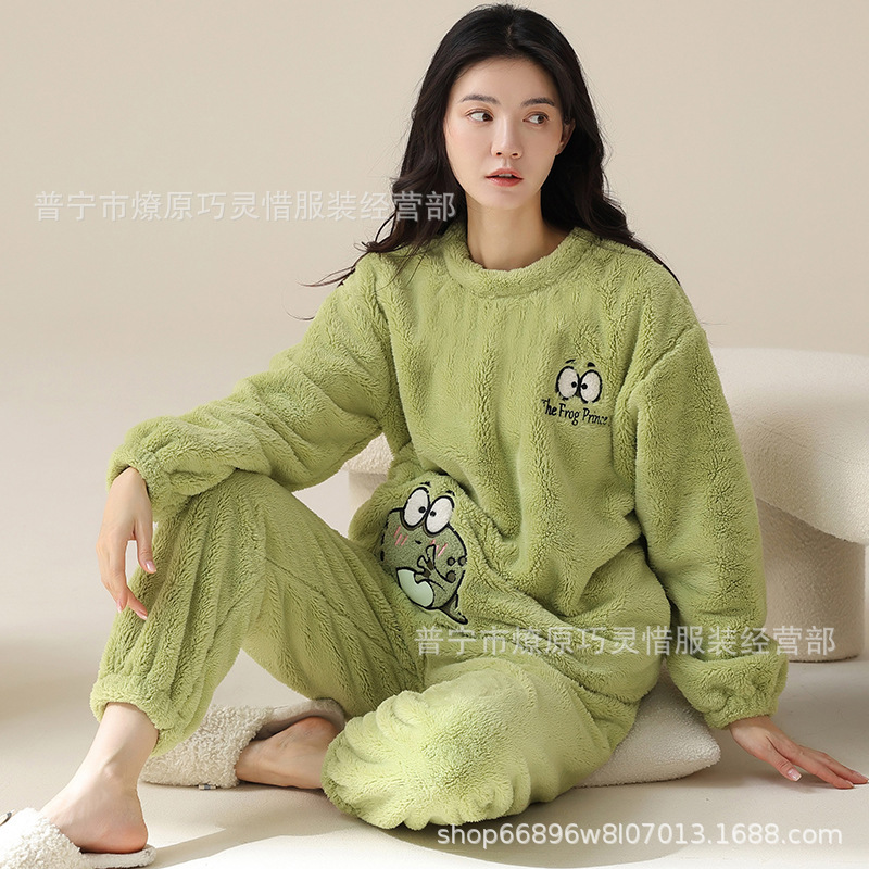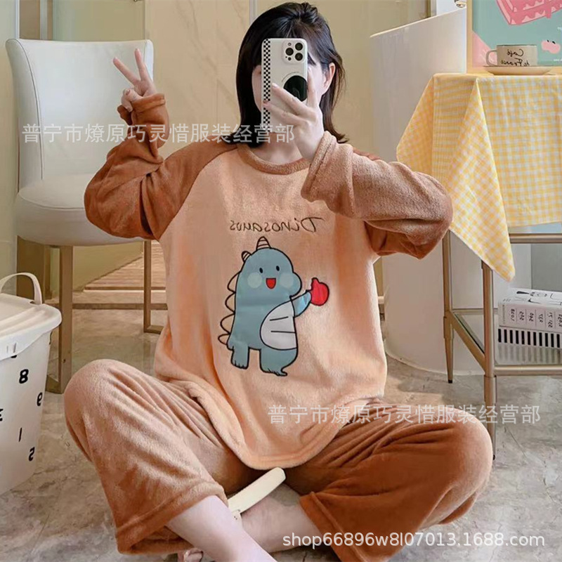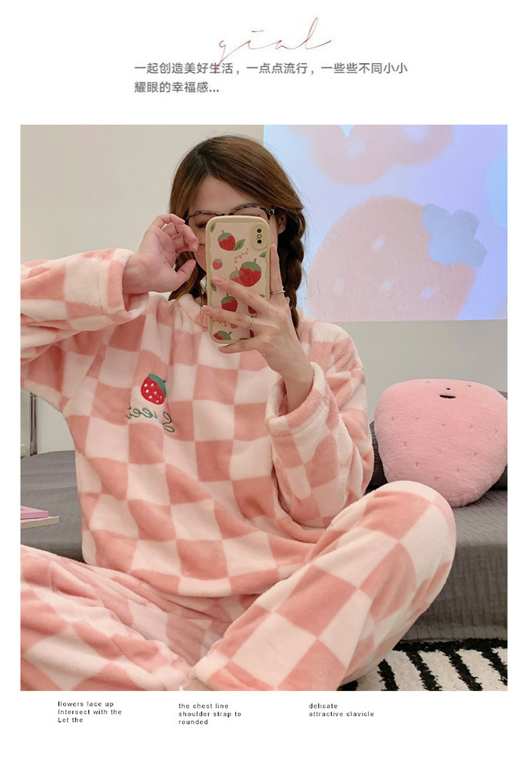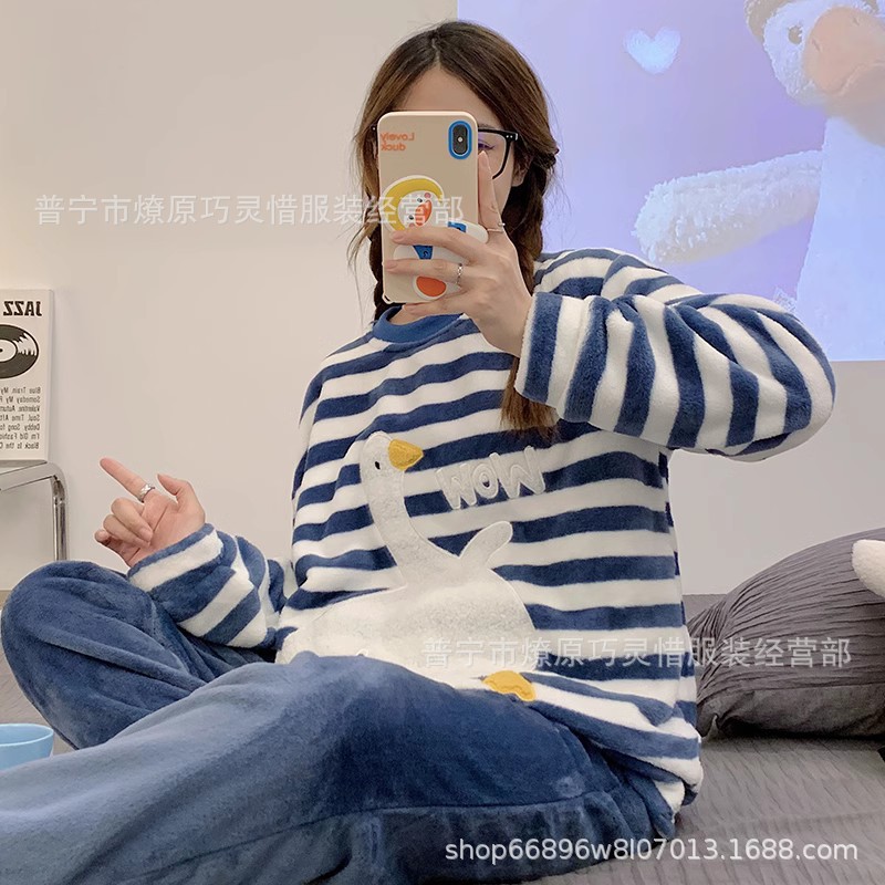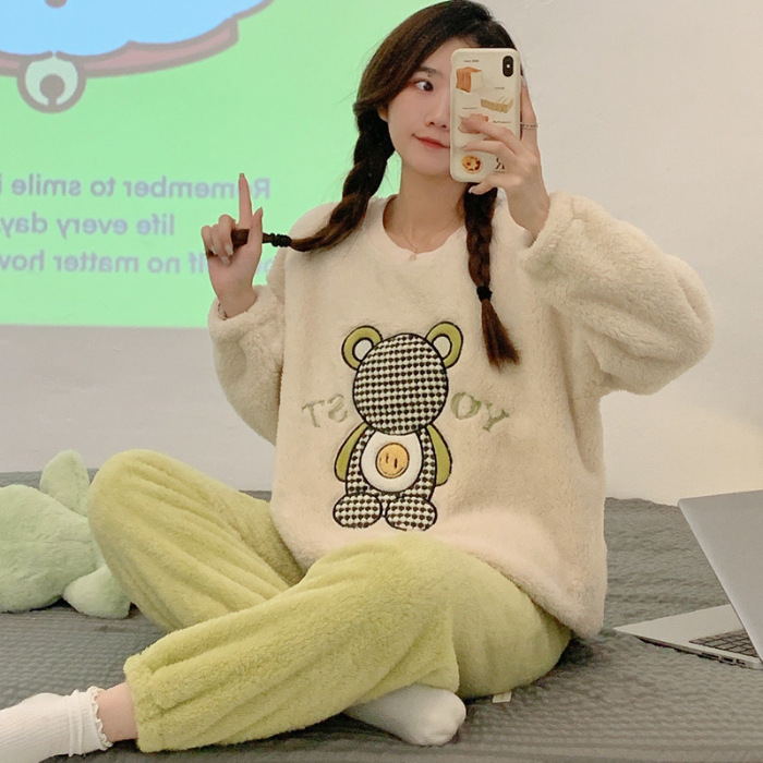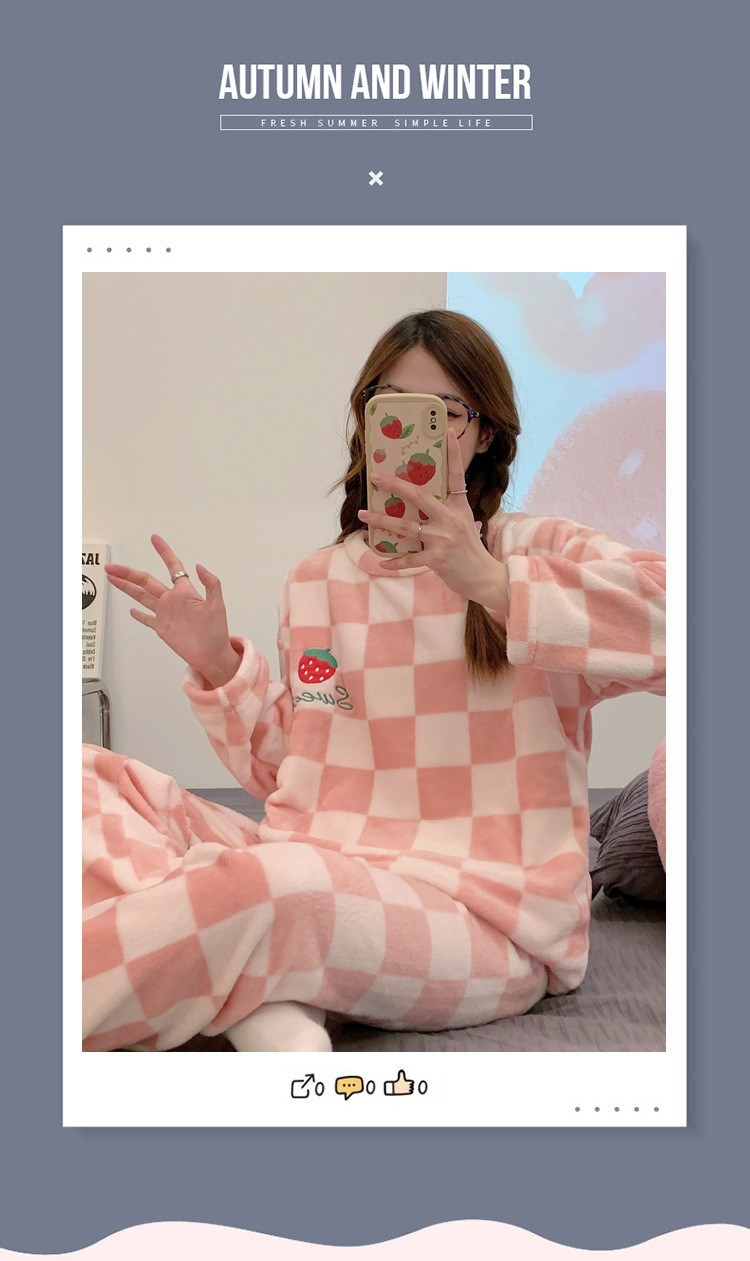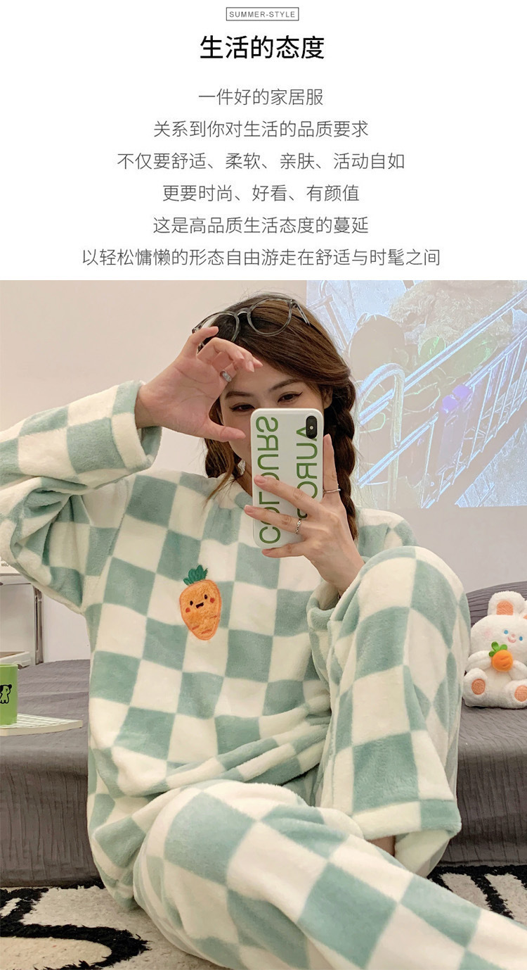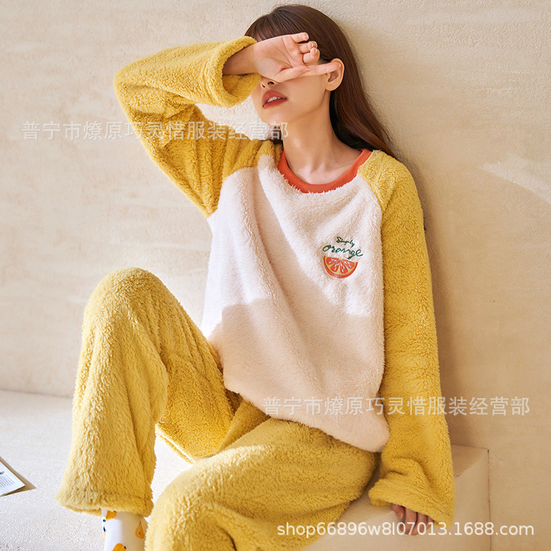 산호 벨벳 파자마 여성의 겨울 기모 두꺼운 따뜻한 플란넬 사이버 연예인 Ins 스타일 2024 새 홈 의류스토어 가기