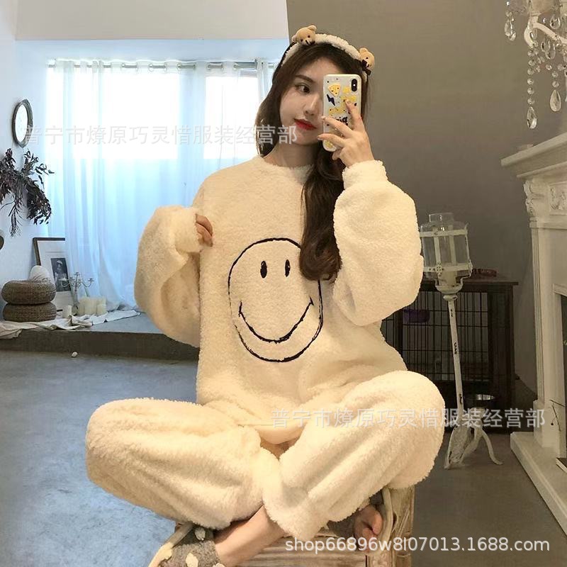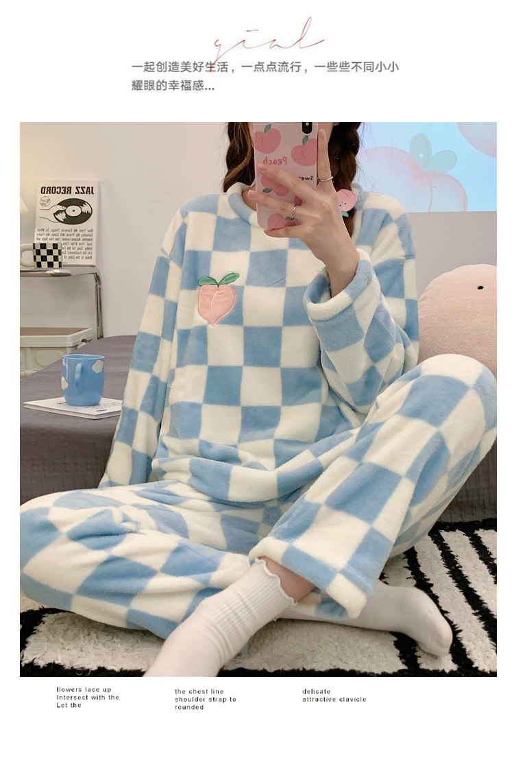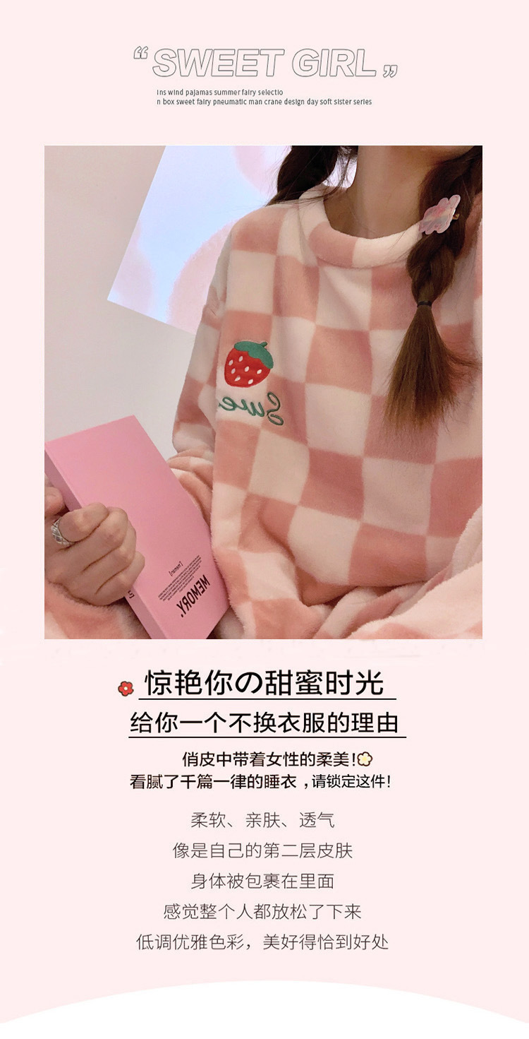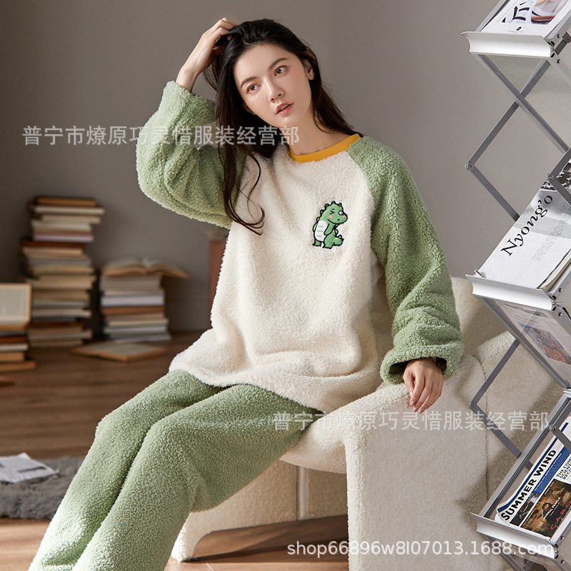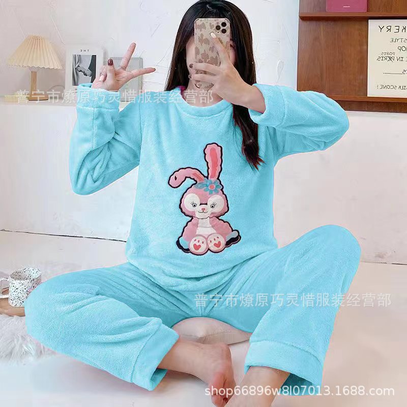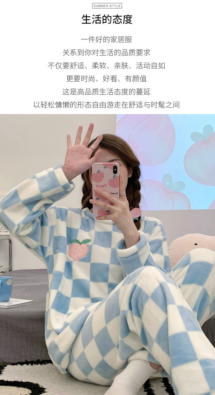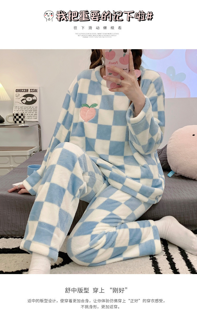 산호 벨벳 파자마 여성의 겨울 기모 두꺼운 따뜻한 플란넬 사이버 연예인 Ins 스타일 2024 새 홈 의류스토어 가기