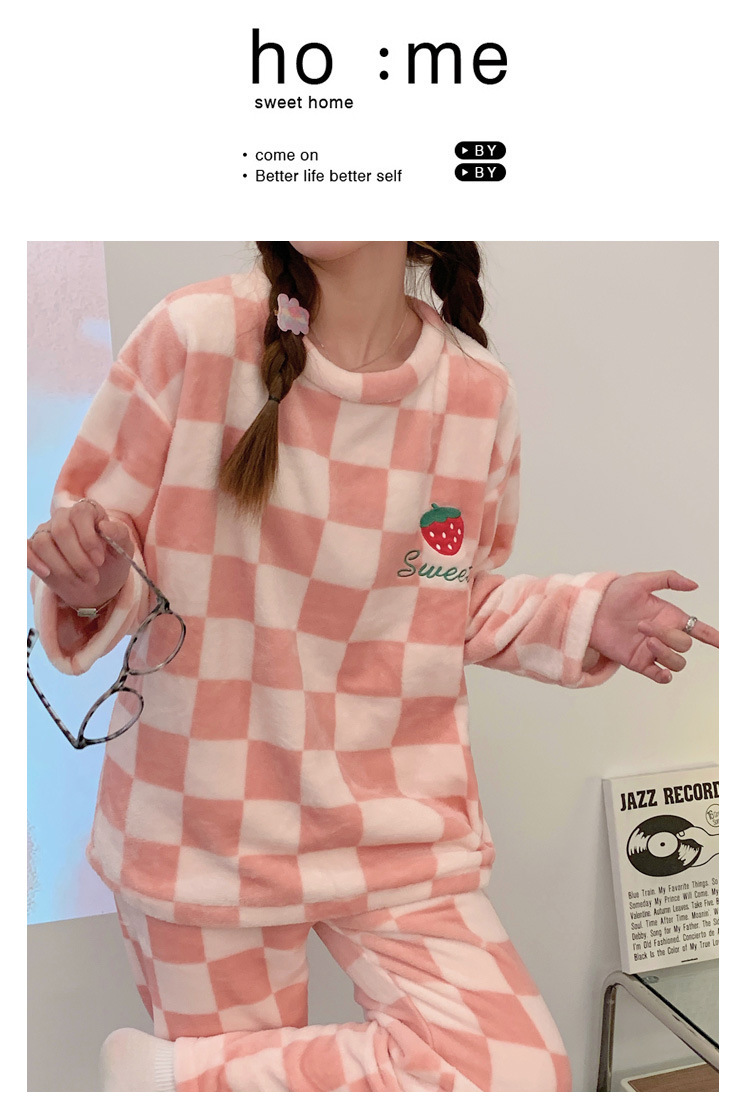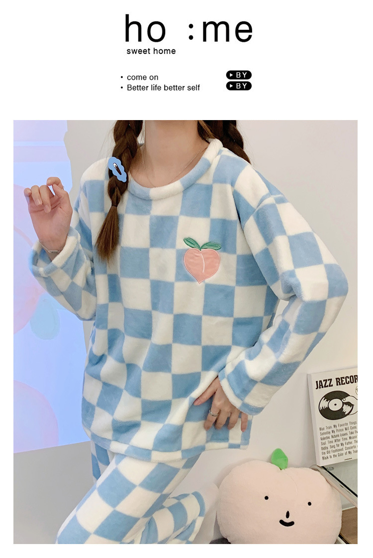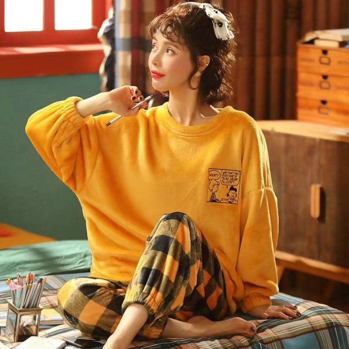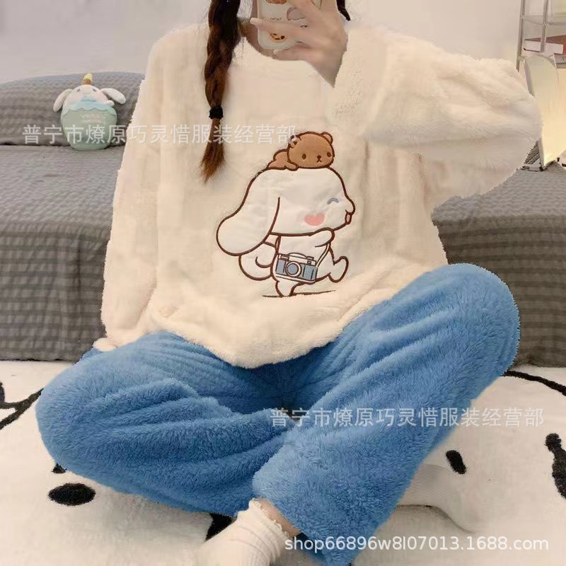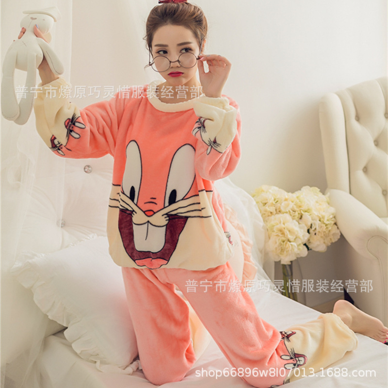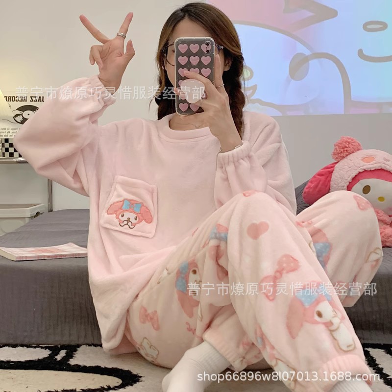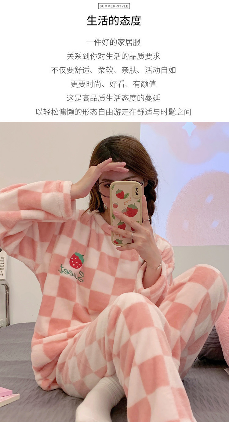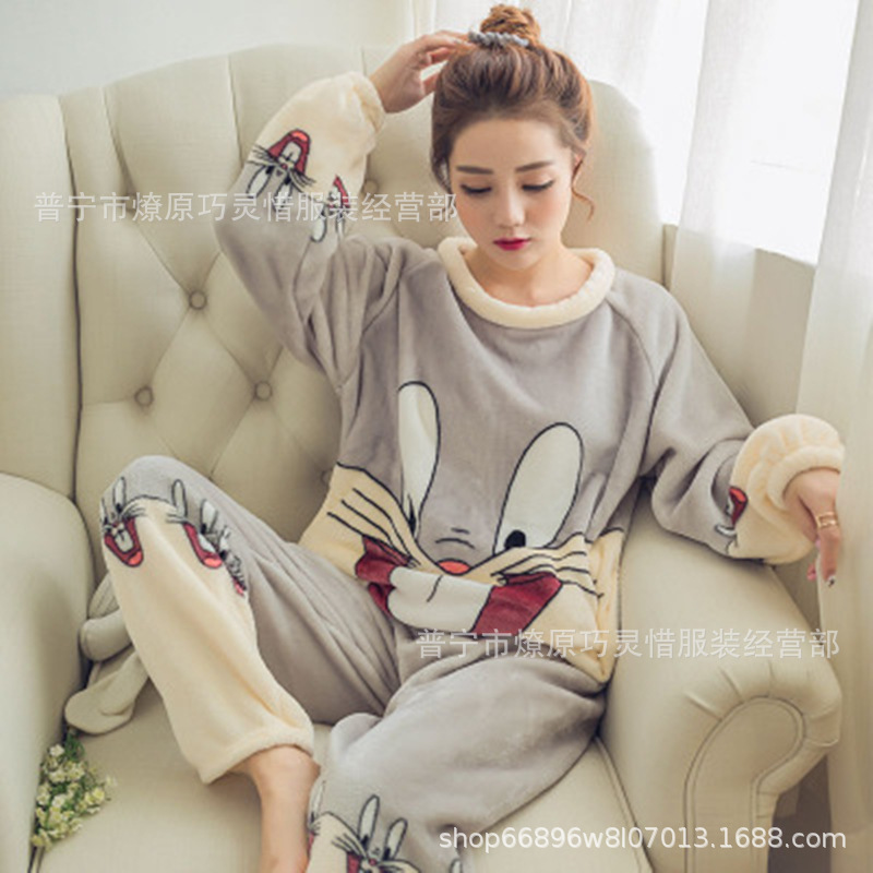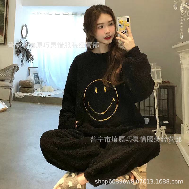 산호 벨벳 파자마 여성의 겨울 기모 두꺼운 따뜻한 플란넬 사이버 연예인 Ins 스타일 2024 새 홈 의류스토어 가기