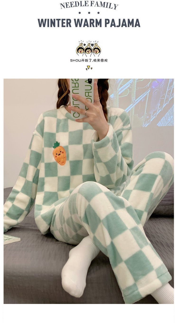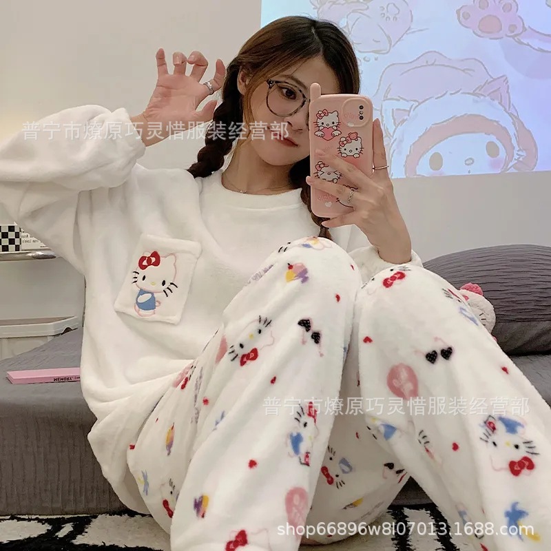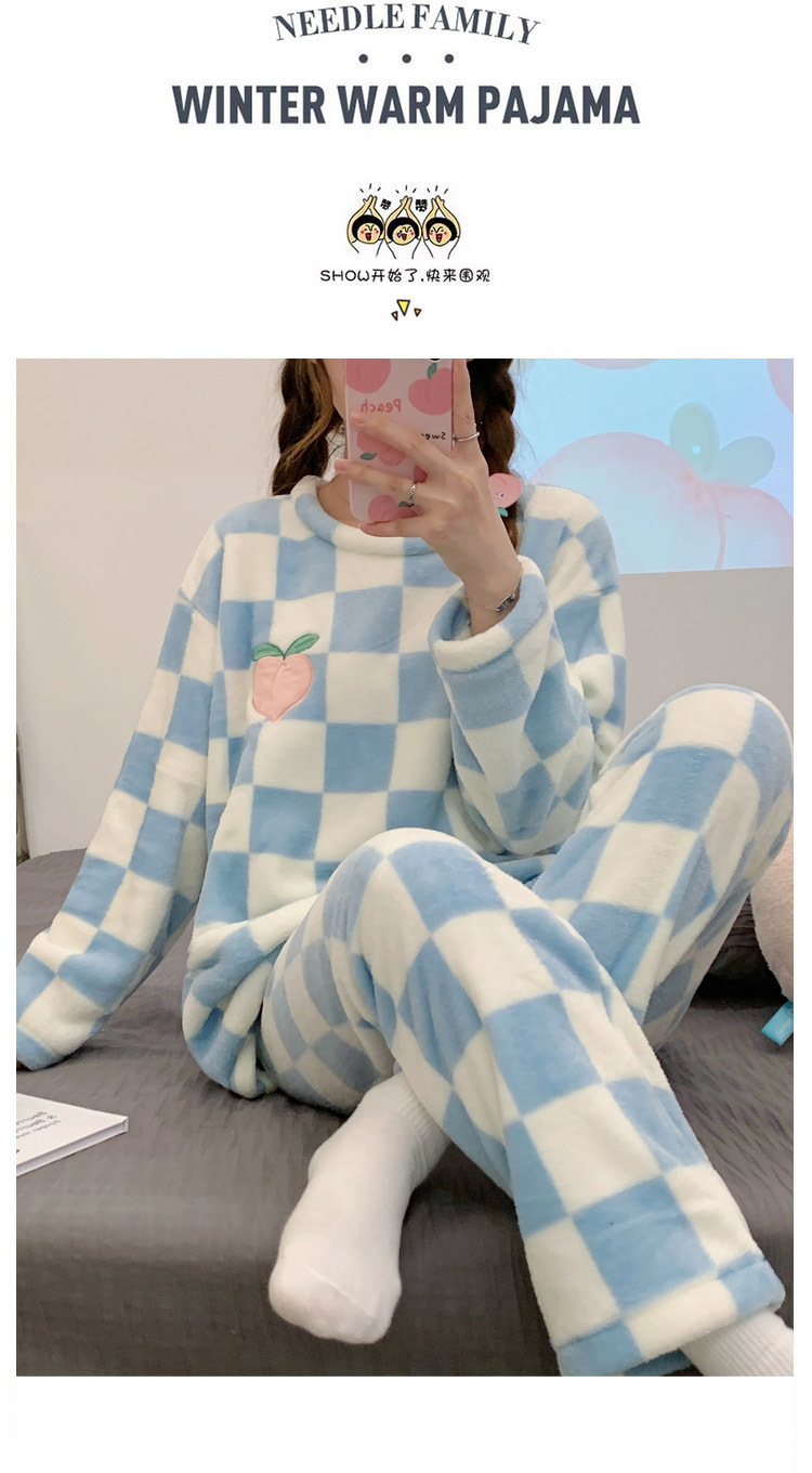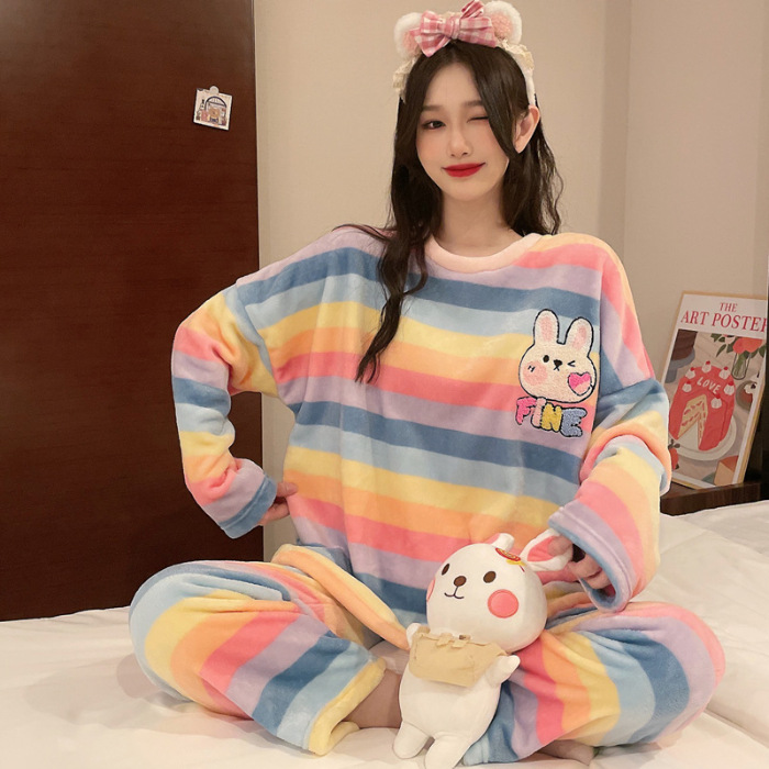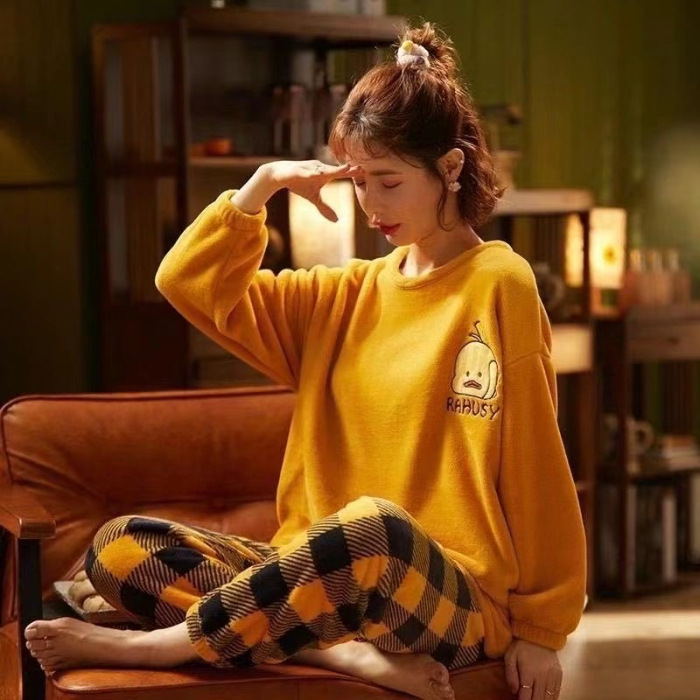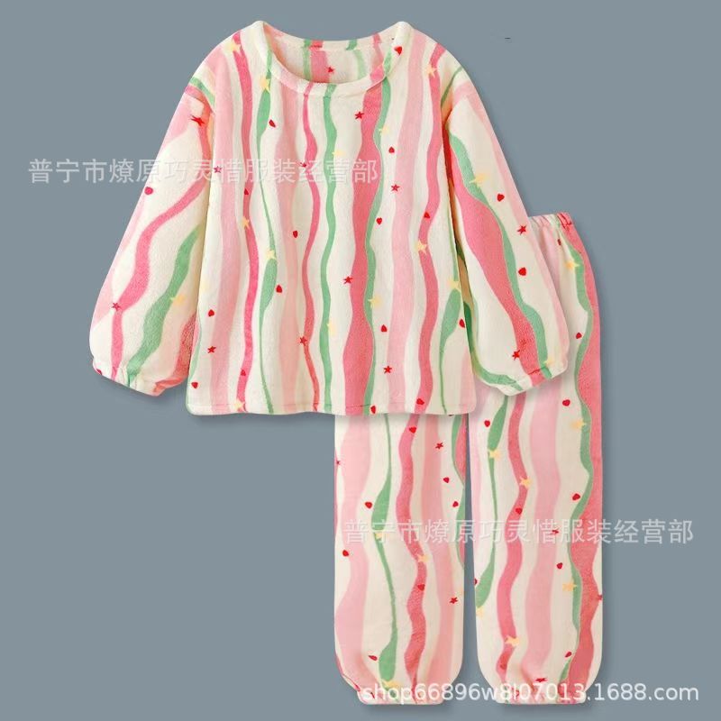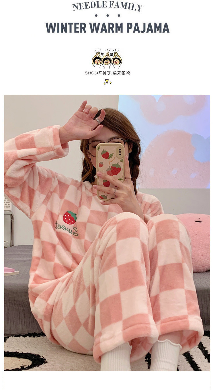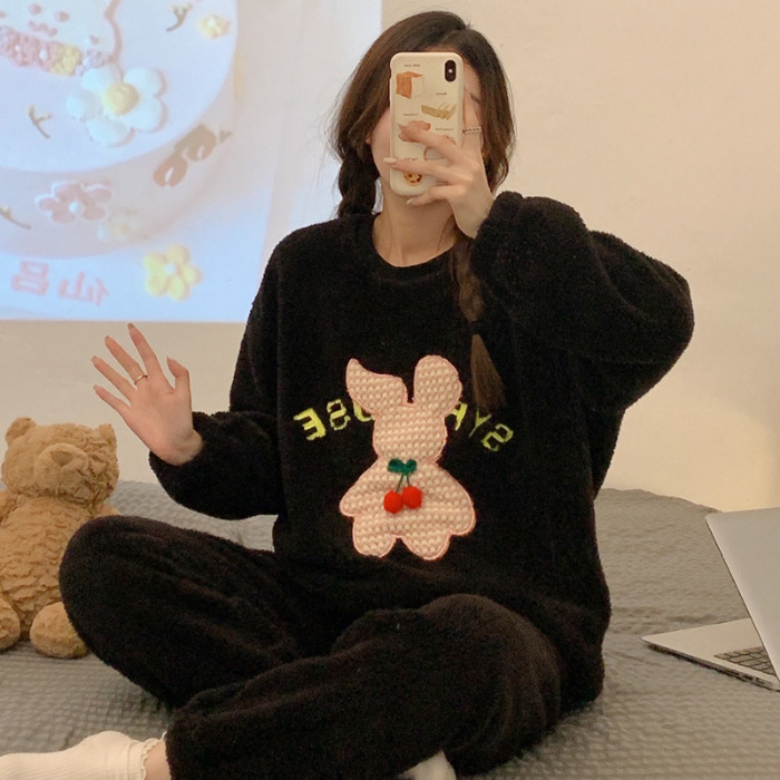 산호 벨벳 파자마 여성의 겨울 기모 두꺼운 따뜻한 플란넬 사이버 연예인 Ins 스타일 2024 새 홈 의류스토어 가기