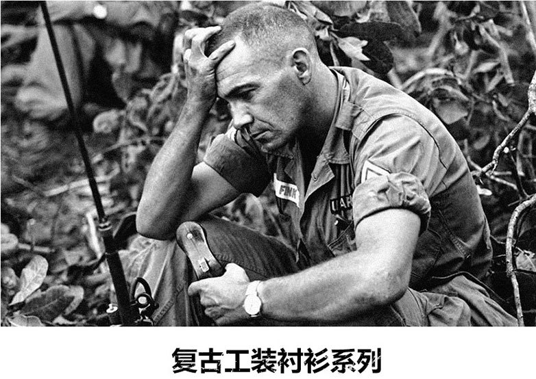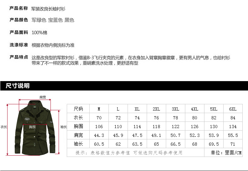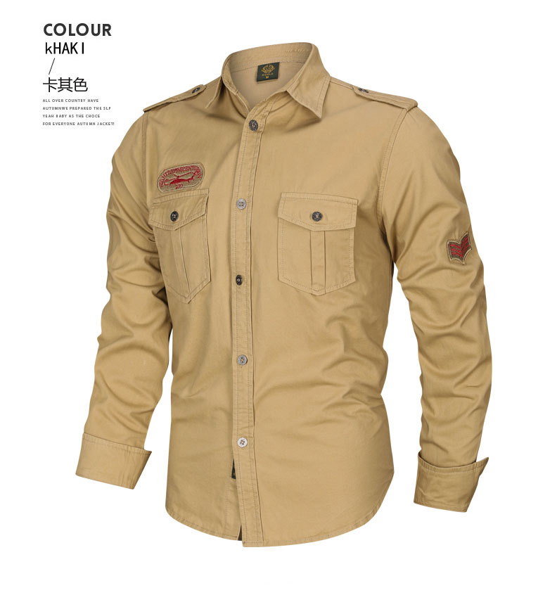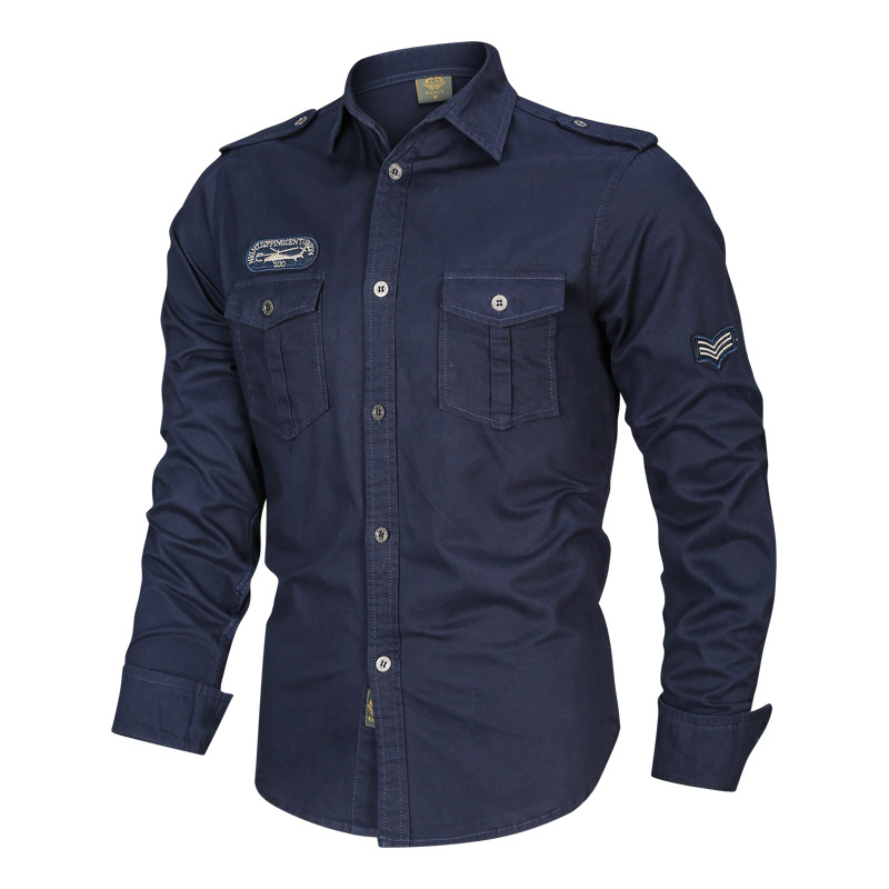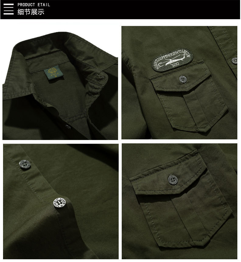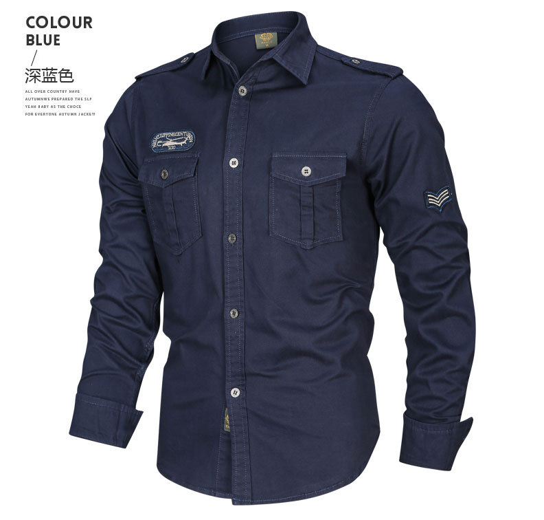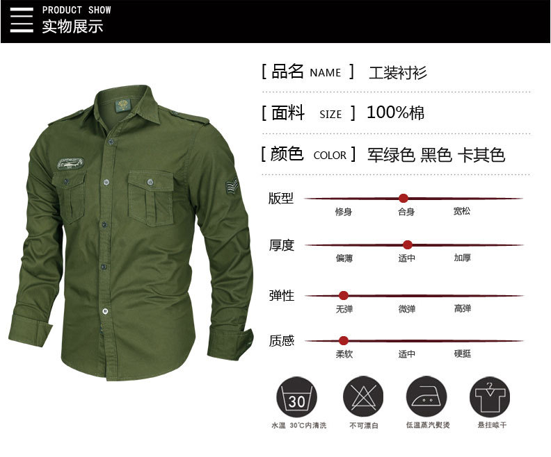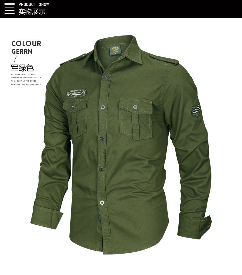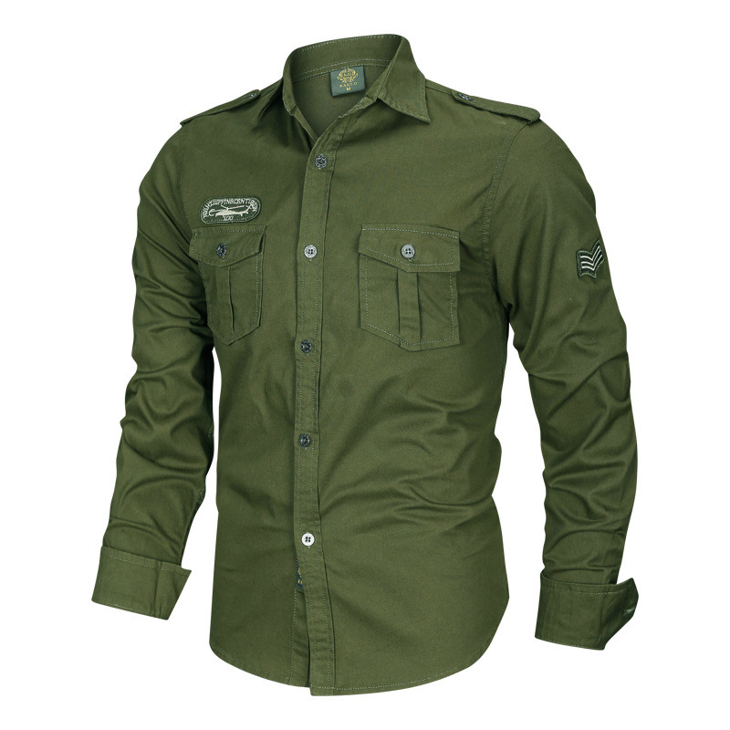 국경 간 AliExpress 봄과 가을 새로운 유럽과 미국 남성의 긴 소매 셔츠는 가을 남성 옷깃 셔츠 군사 스타일을 기원합니다스토어 가기