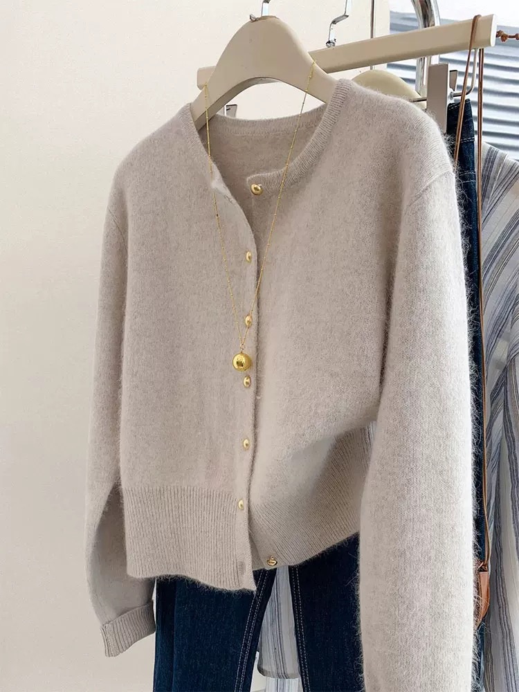 풀 울 카디건 여성 라운드 넥 2024 봄과 가을 그레이 니트 스웨터 코트 높은 허리 슬림 룩 탑 폭발스토어 가기