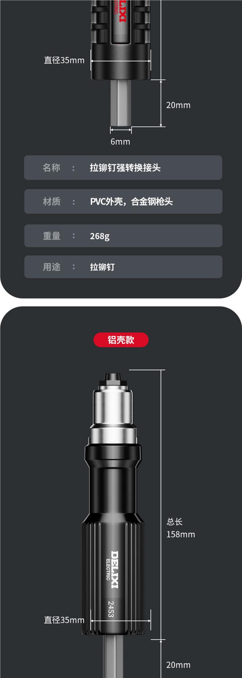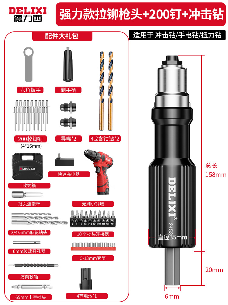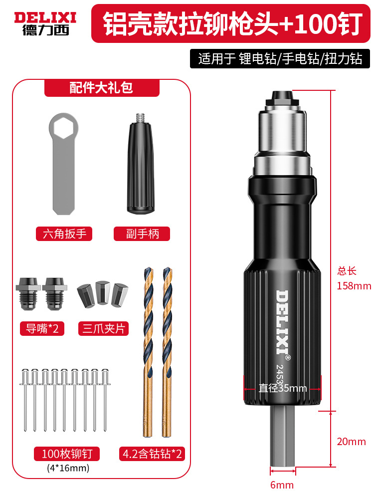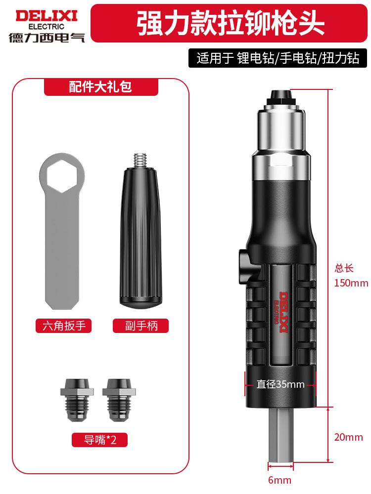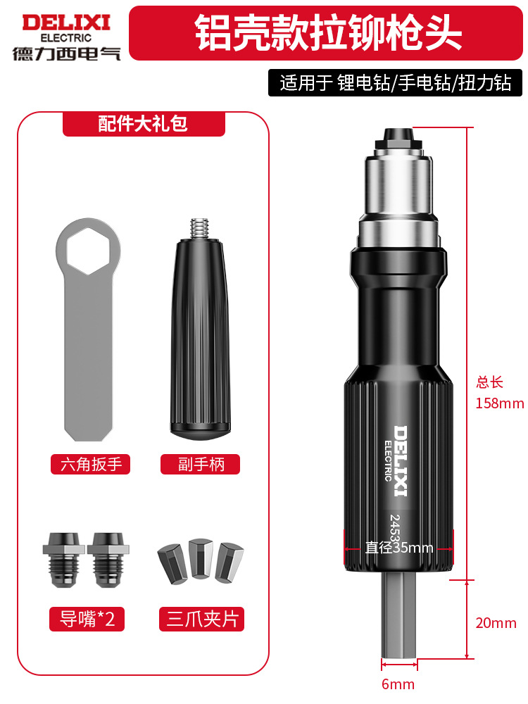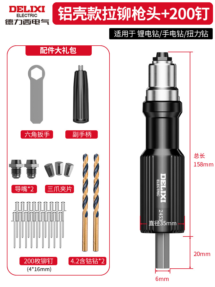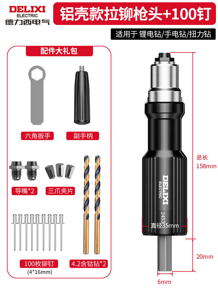 Delixi Rivet Gun 전기 코어 당김 리벳 건 전환 헤드 자동 전기 드릴 코어 당김 못 당기는 머리