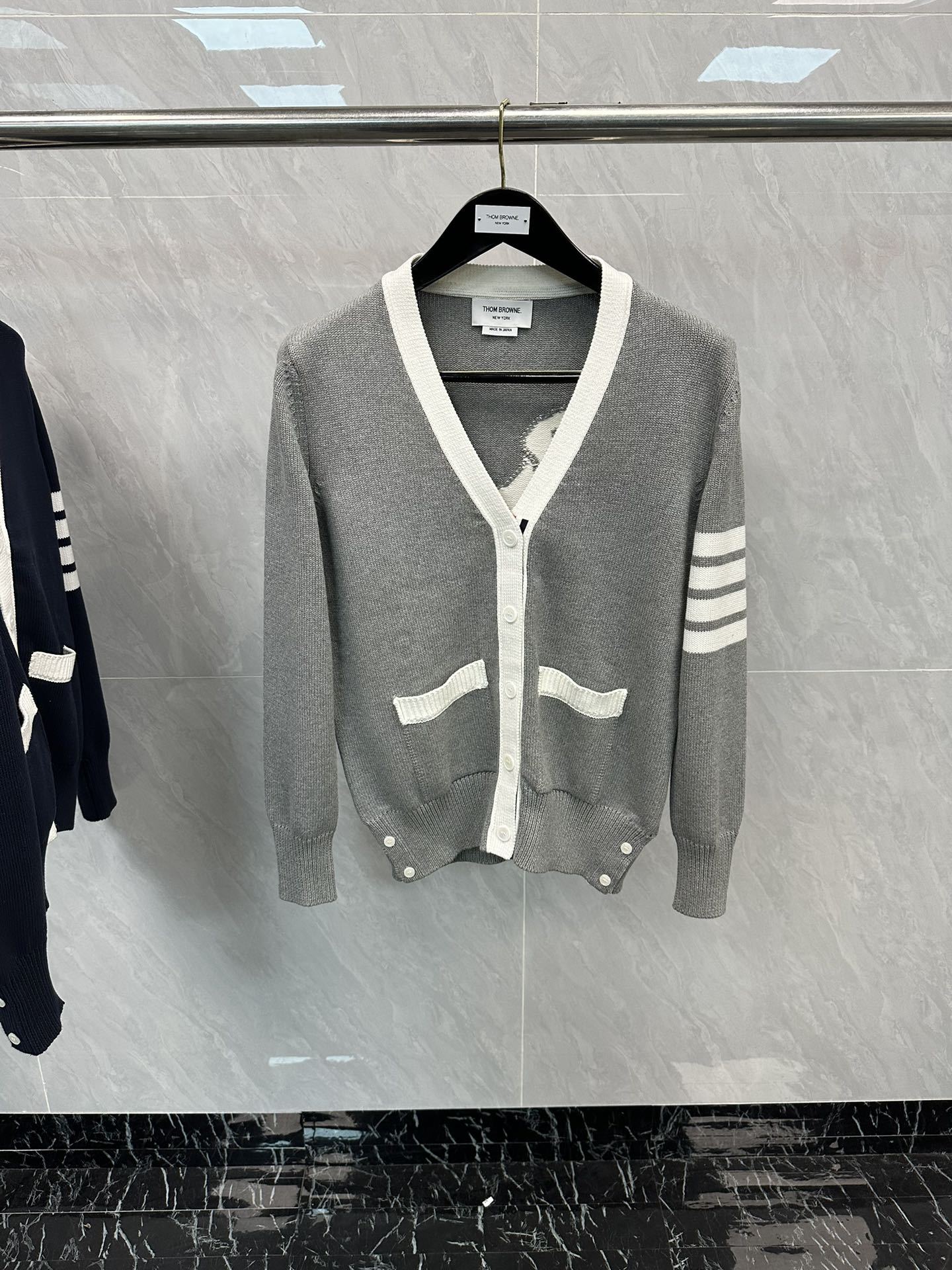 TB 공장 직접 패션 브랜드 남성과 여성의 가을과 겨울 화이트 4 바 스트라이프 백 니트 강아지 V 넥 카디건스토어 가기