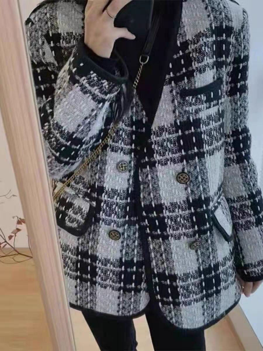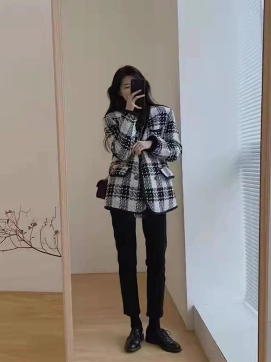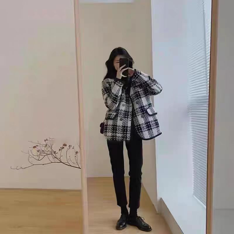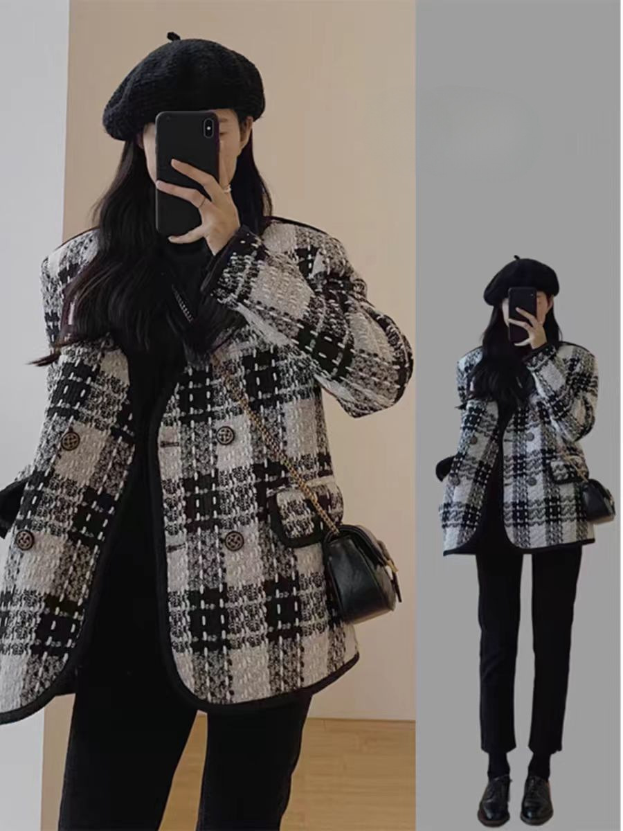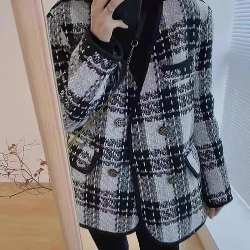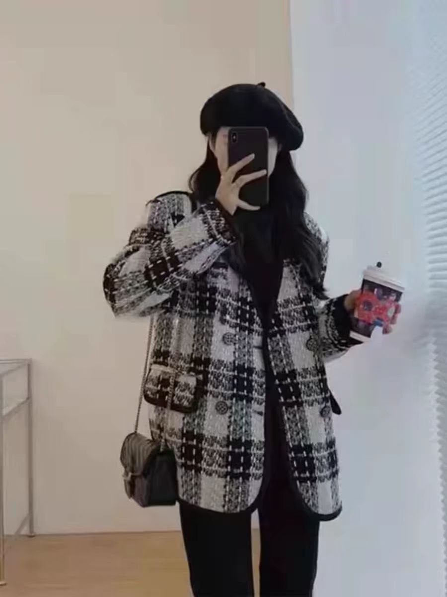 한국 스타일 새로운 가을과 겨울 프랑스 스타일 하이 엔드 슈퍼 잘 생긴 디자인 센스 짧은 트위드 체크 코트 샤넬 스타일 여성스토어 가기