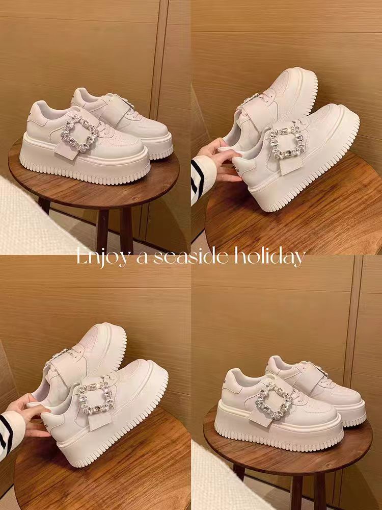 Su yingyin 슈퍼 섬유 다이아몬드 버클 내마 모성 라인 석 두꺼운 밑창 캐주얼 스포츠 스니커즈 여성 흰색 신발 내부 높이 증가 봄 여성 신발스토어 가기