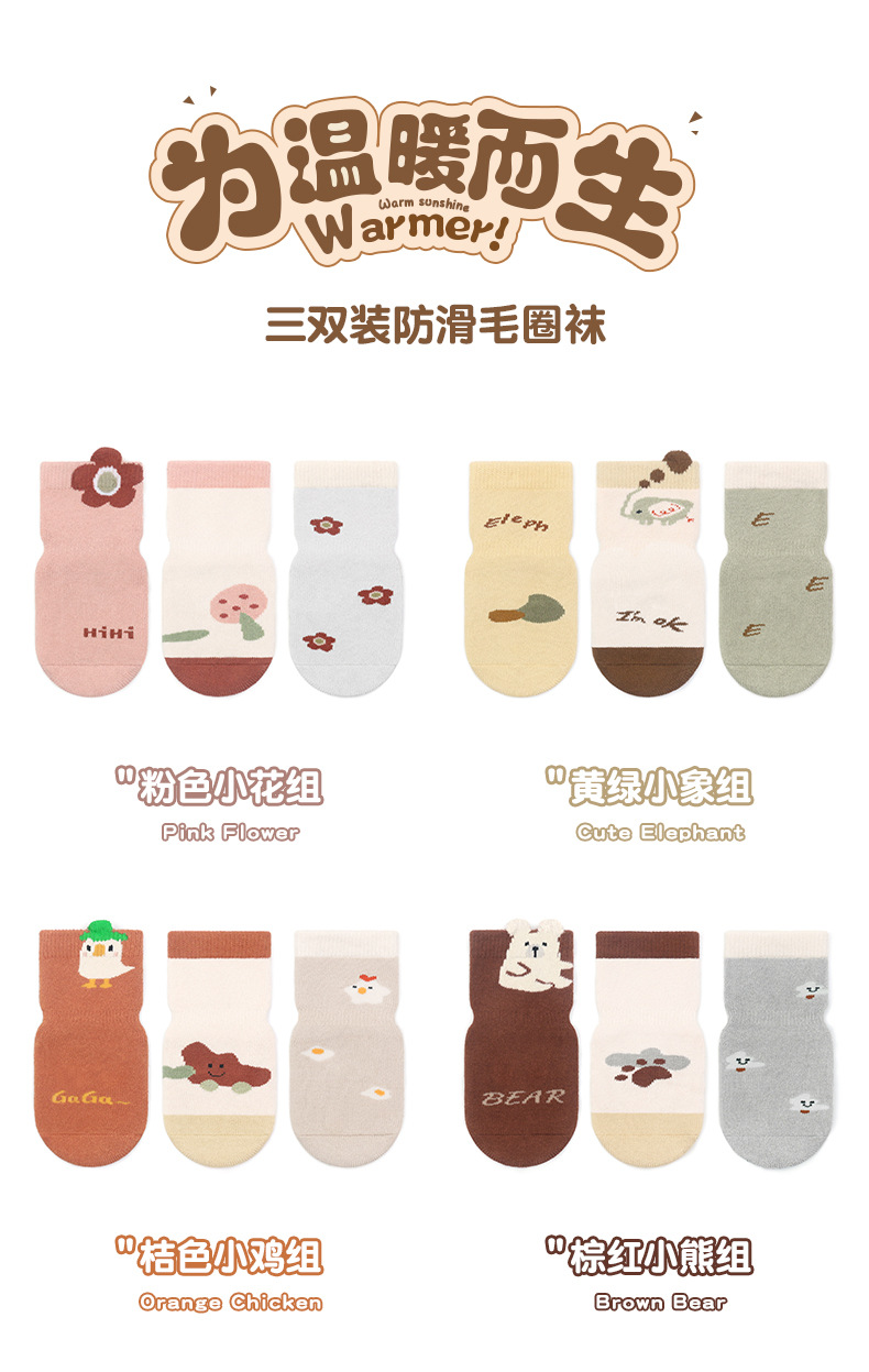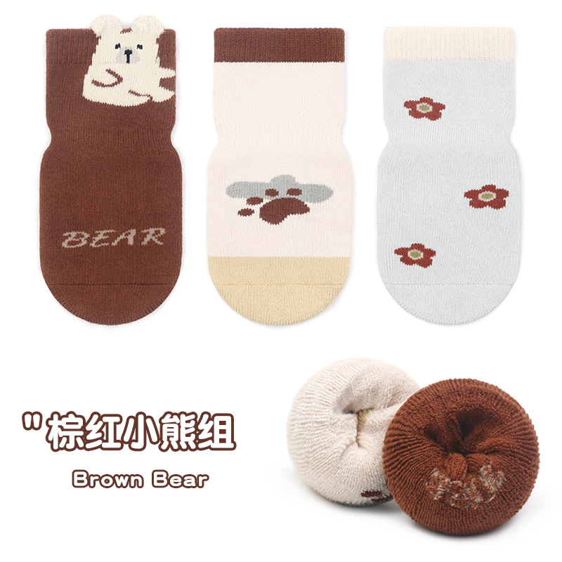 23 두꺼운 3 차원 만화 큰 지역 접착 비 슬립 아기 유아 수건 양말 3 쌍 테리 양말