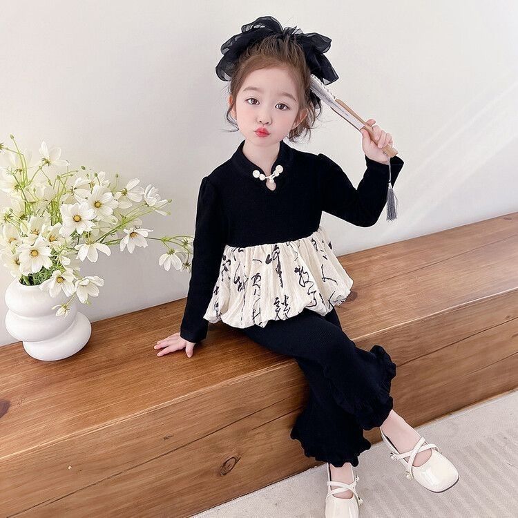 2024 새로운 어린이 착용 천 캐릭터 아기 봄과 가을 소녀 중국 스타일의 세트 어린이 투피스 세트 국가 패션 귀여운스토어 가기