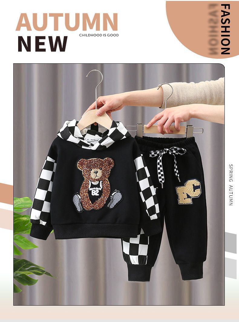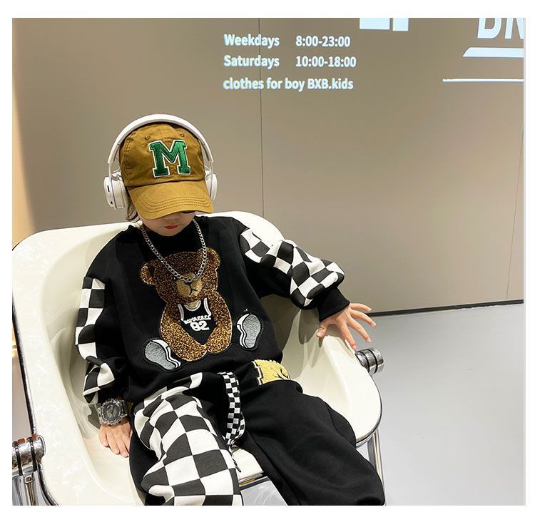 소년 가을 만화 2 조각 세트 2024 가을과 겨울 새로운 잘 생긴 운동복 유행 긴 바지 곰 옷스토어 가기