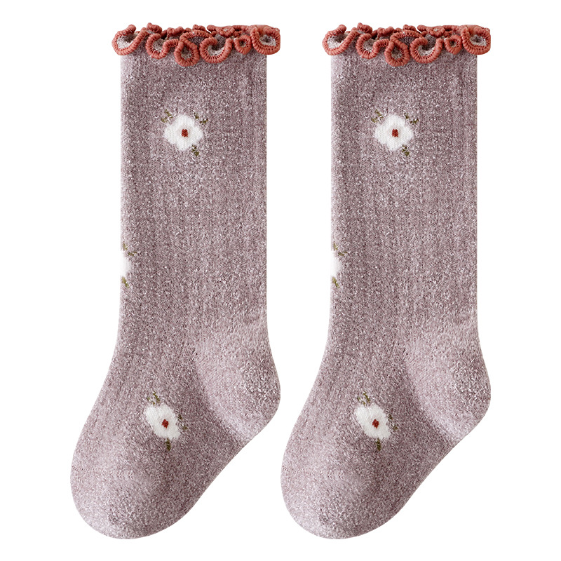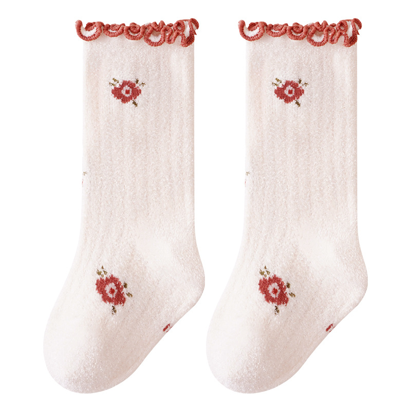 아기 양말 2024 겨울 새로운 두꺼운 따뜻한 솔리드 컬러 느슨한 뼈없는 소년과 소녀 아기 아이들의 양말