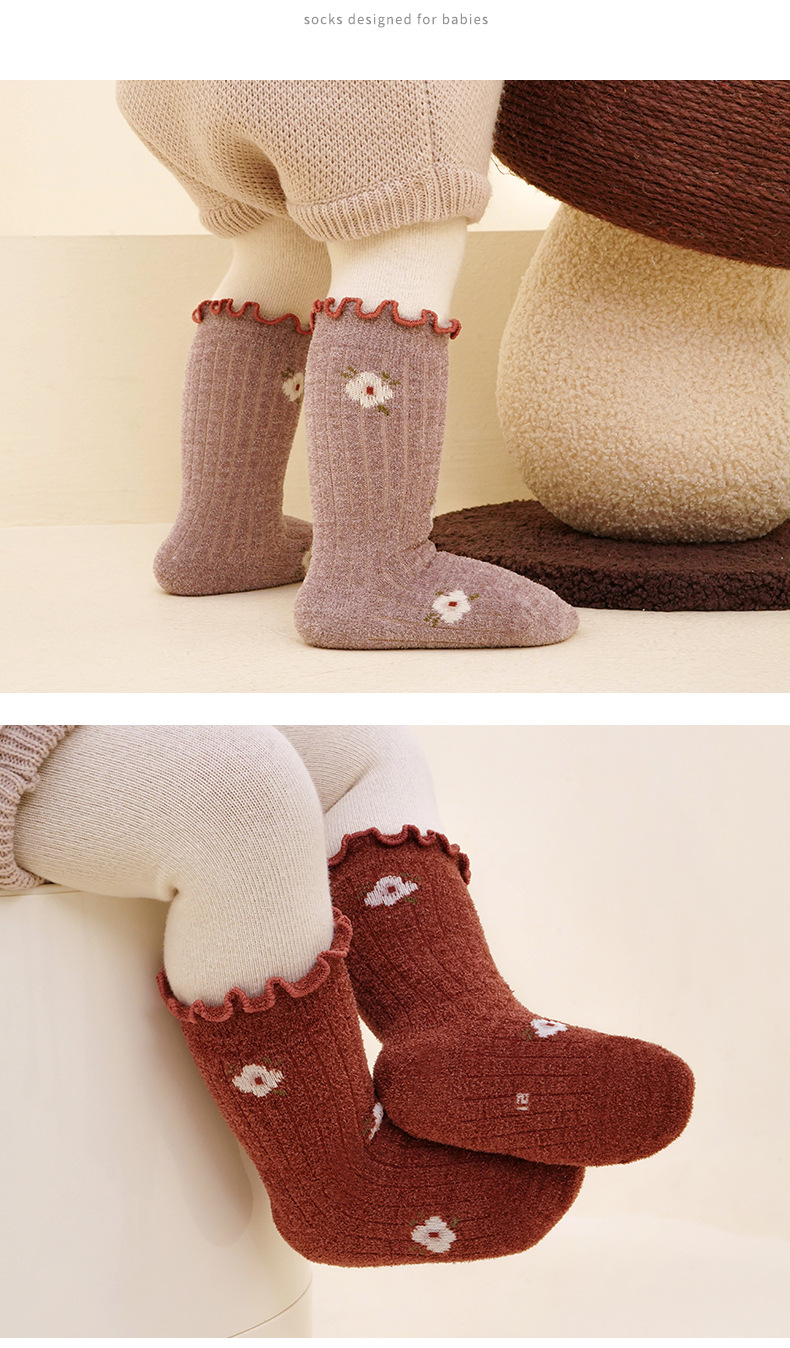 아기 양말 2024 겨울 새로운 두꺼운 따뜻한 솔리드 컬러 느슨한 뼈없는 소년과 소녀 아기 아이들의 양말스토어 가기