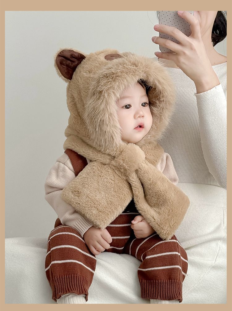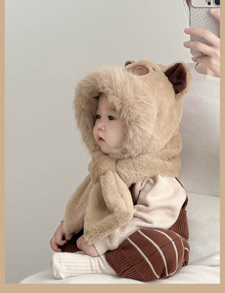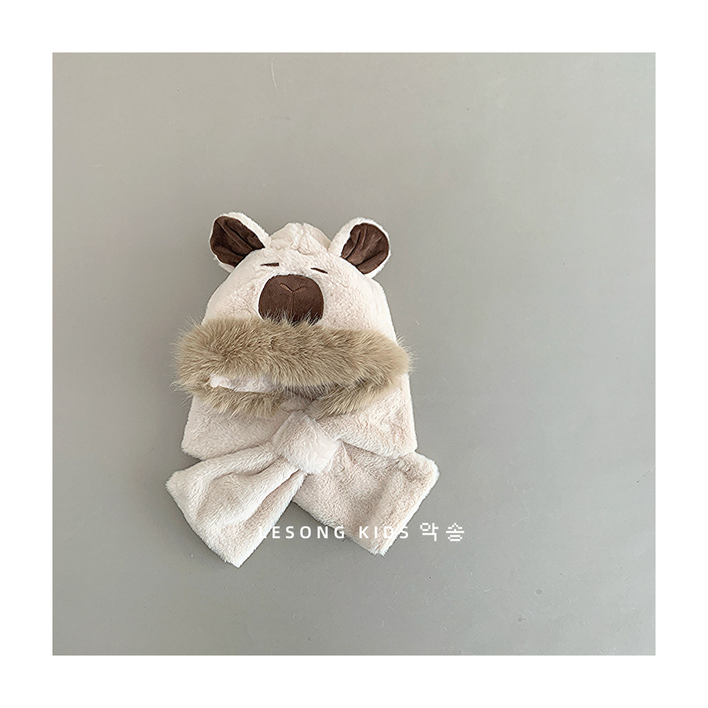 韩系可爱卡皮巴拉儿童秋冬保暖一体帽