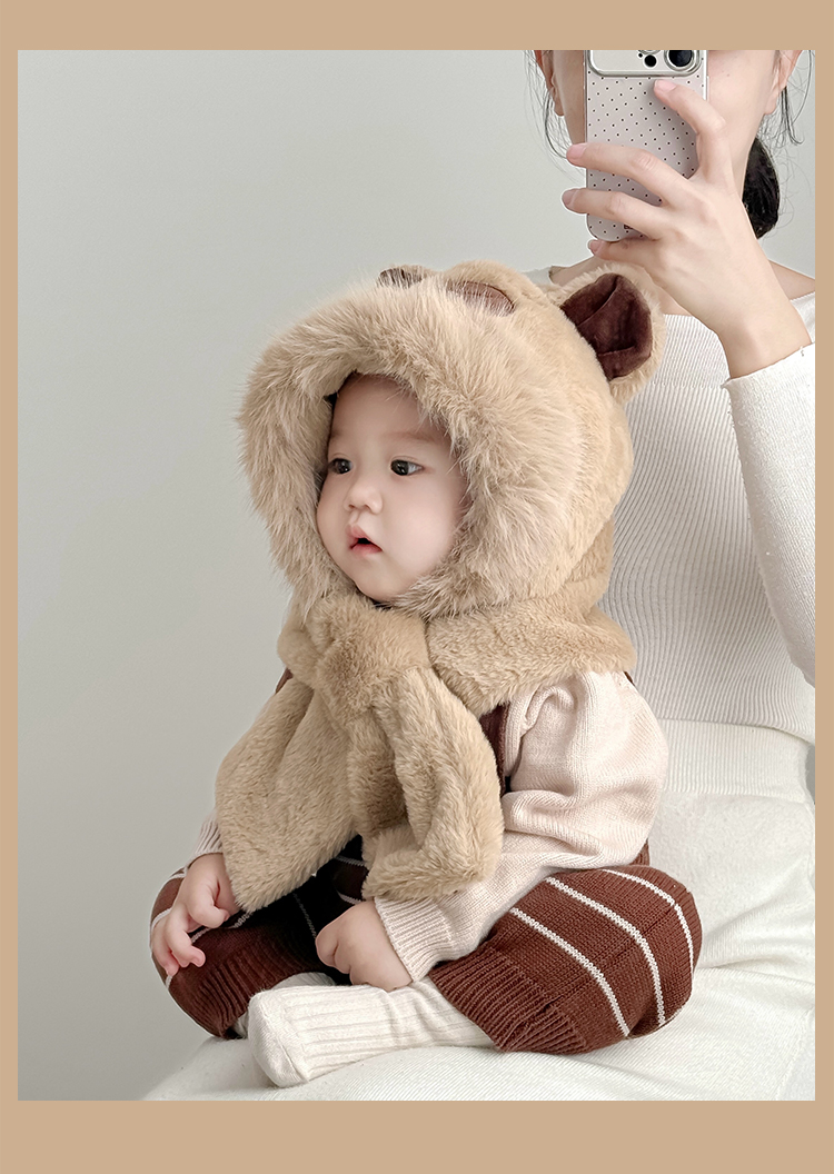 Kapi Bala 모자와 스카프 통합 어린이 따뜻한 두꺼운 푹신한 모자 겨울 귀 보호 모자