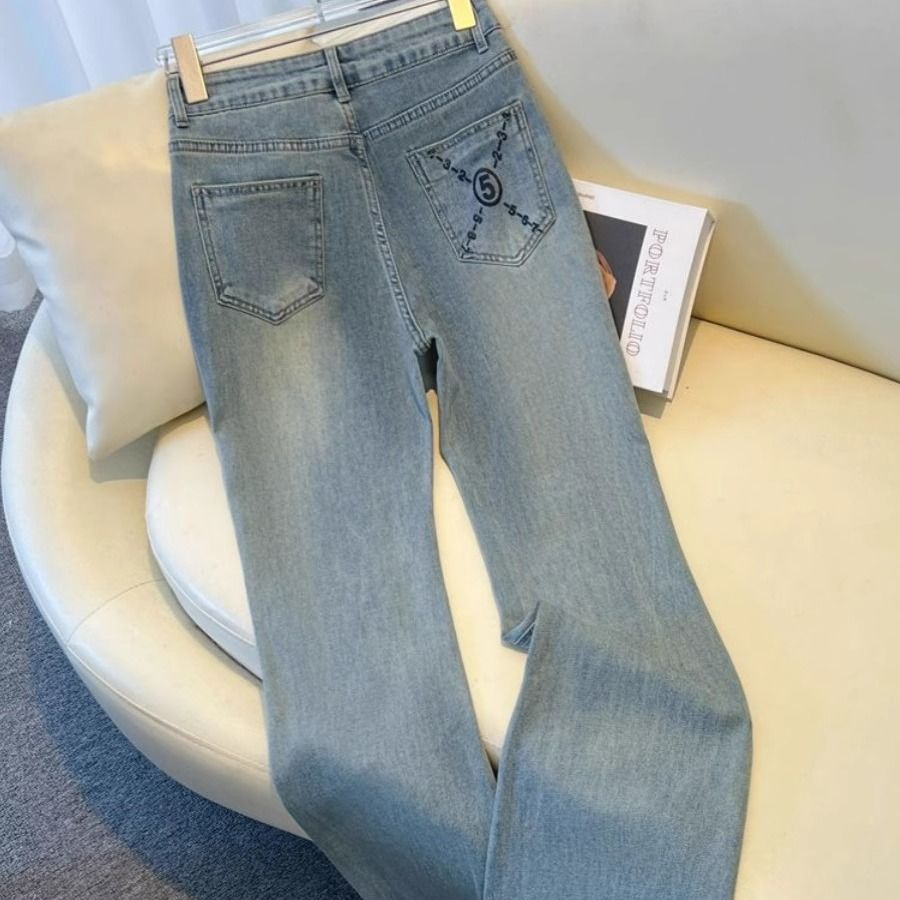 미국 레트로 높은 허리 마이크로 라르 청바지 여성의 가을 2024 새로운 패션 폭발 느슨한 슬림 말굽 바지스토어 가기