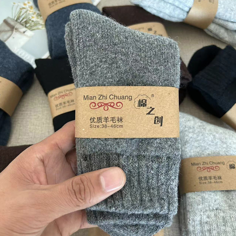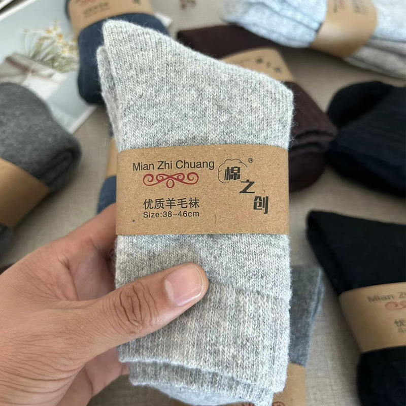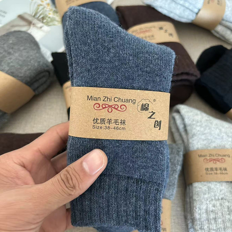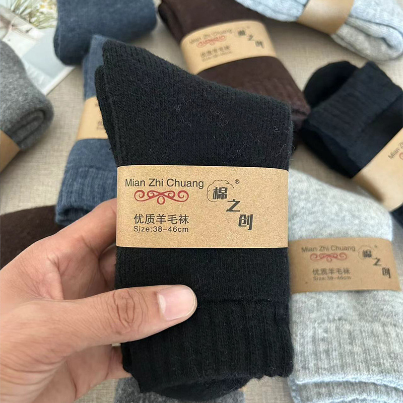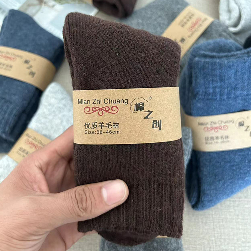 가을과 겨울 두꺼운 양모 양말 남성용 단색 캐주얼 휴지통 양말 중견관 양모 두꺼운 여성을 위해 따뜻한스토어 가기