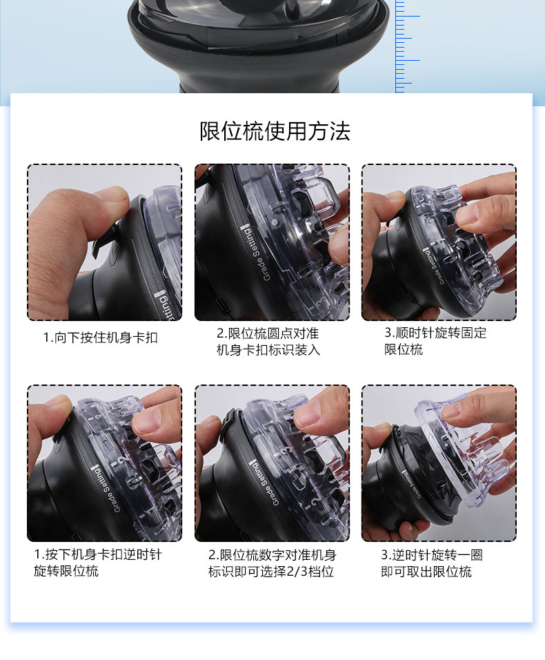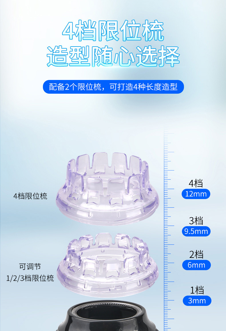 5. 4档位限位梳调节,可根据不同需求自由选择