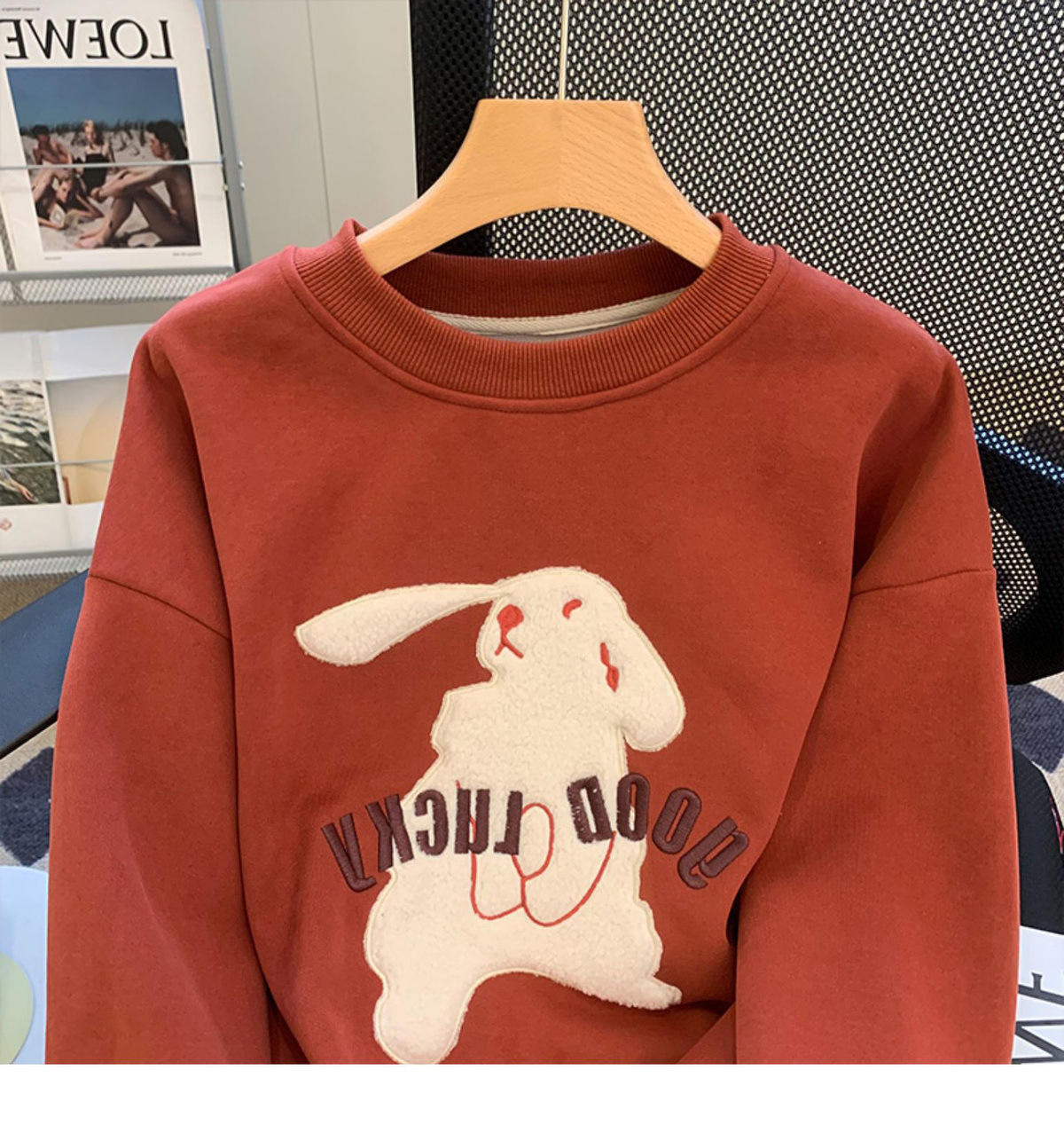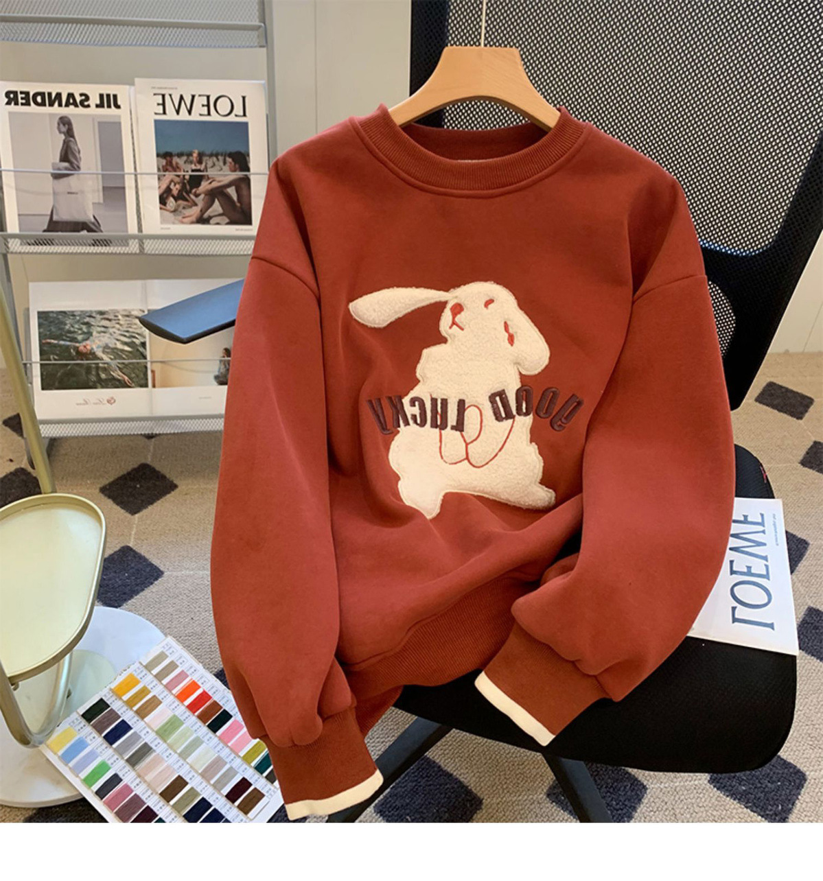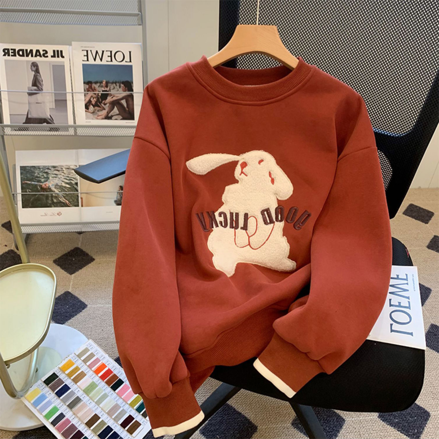아메리칸 스타일 레트로 토끼 자수 라운드 넥 스웨트 셔츠 여성의 2024 가을 얇은 유행 브랜드 디자인 감각 느슨한 탑 유행 새로운스토어 가기
